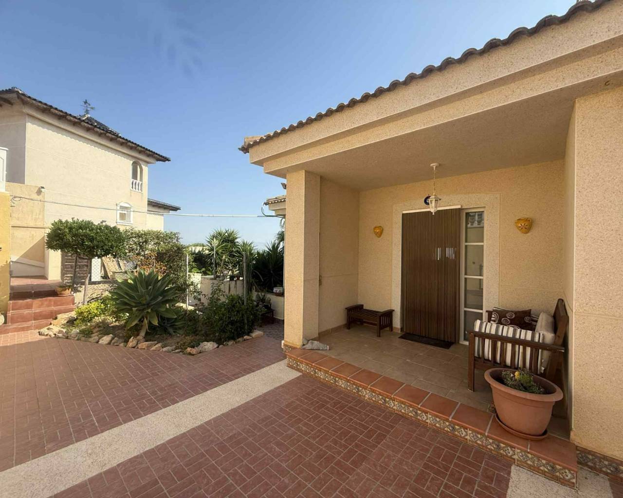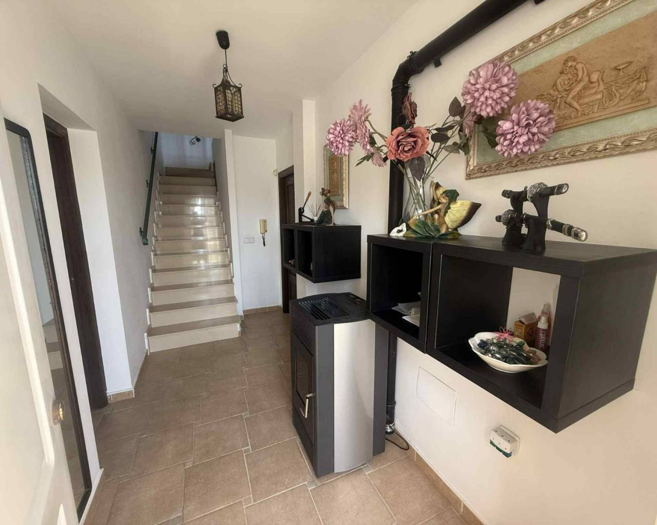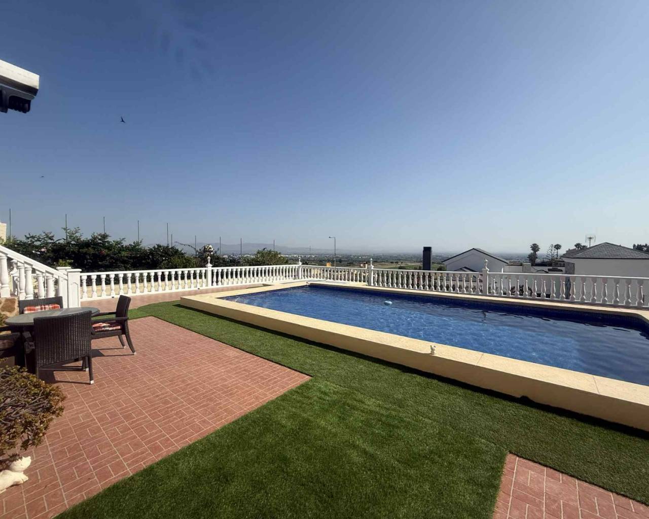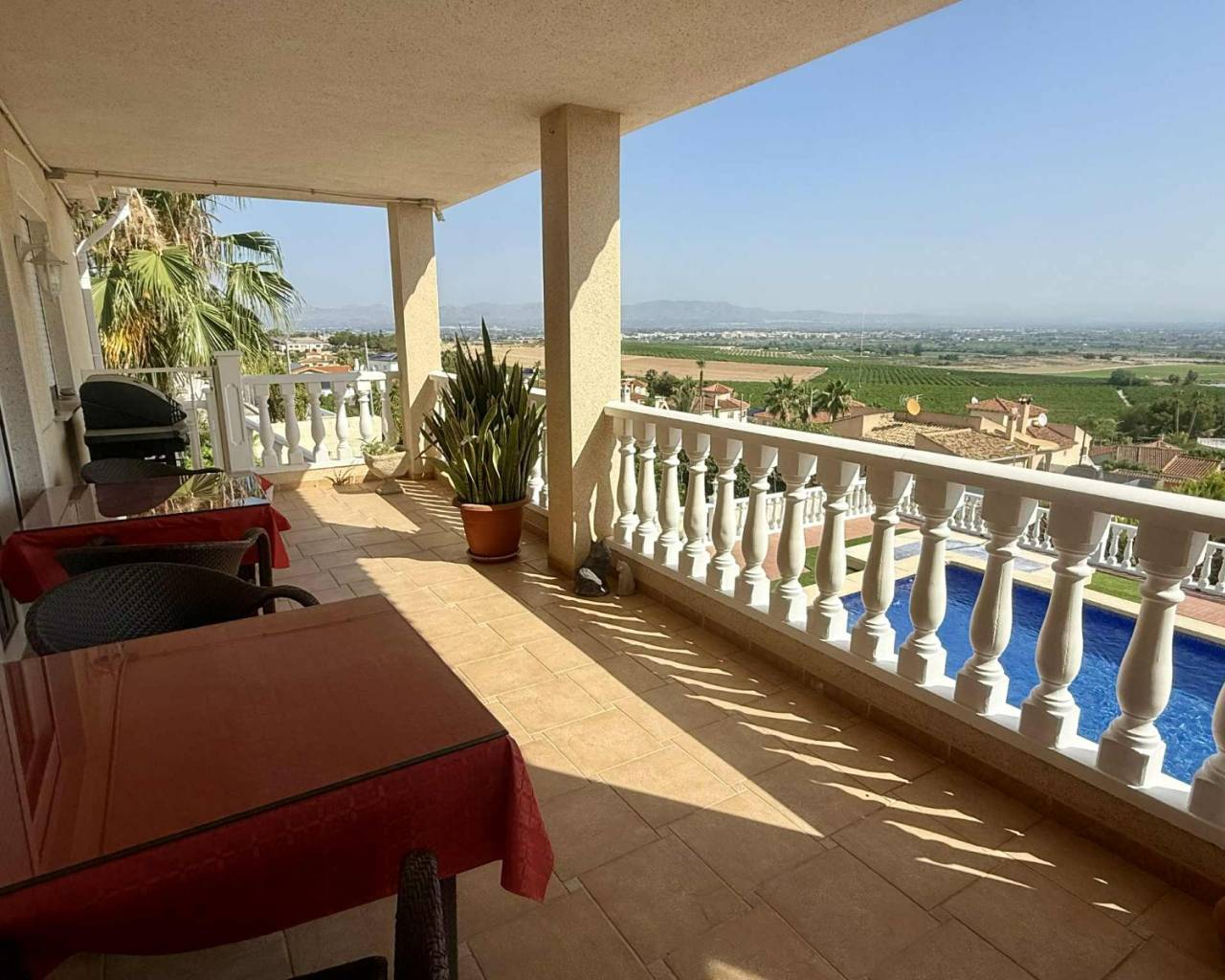 JL Morales präsentiert diese schöne Villa in Lomos de Juliana, nur wenige Minuten von der renommierten Golfanlage La Finca in Algorfa gelegen.Es gibt eine Wohnfläche von etwa 201 m2, verteilt auf zwei Etagen. An der Vorderseite befindet sich ein Doppelcarport und über die Treppe gelangt man zum Haupteingang des Anwesens, mit einer begrünten Terrasse mit verschiedenen Palmen und Stauraum. Sie betreten das Anwesen über eine überdachte Terrasse zur Eingangshalle und somit in den Wohnbereich, wo Sie sofort von dem Licht und der schönen Aussicht begrüßt werden. Das Wohnzimmer hat einen gemütlichen Kamin, aber auch eine Klimaanlage für heiße Tage mit einem offenen Raum als Essbereich, dieser hat Zugang zu einer überdachten Terrasse mit Markise, die rundherum zur Küche geht. Es gibt eine große separate ausgestattete Küche im rustikalen Stil mit Speisekammer. Auf dieser Etage finden Sie auch ein Gäste-WC. Vom Wohnzimmer aus führt eine Treppe in die untere Etage, wo sich auf der rechten Seite das Hauptschlafzimmer mit Klimaanlage, Ankleideraum und eigenem Bad mit Dusche befindet. Auf der anderen Seite befindet sich ein „Empfangsraum“ mit Einbauschränken und Zugang zu einem Badezimmer, zwei Schlafzimmer mit Einbauschränken, ein Abstellraum und ein Büro. Im Flur befindet sich ein Pelletofen, von dem aus man auf die hintere Terrasse gelangt, von der aus man einen schönen Blick auf die Umgebung hat und ein erfrischendes Bad im privaten 10 x 5 m großen Pool genießen kann.Mit einem Grundstück von 1.023 m² bietet diese Villa einen ruhigen und großzügigen Rahmen. Verpassen Sie nicht die Gelegenheit, in diesem Haus zu leben, das Eleganz und Komfort in einer privilegierten Lage vereint - buchen Sie noch heute Ihren Besuch!