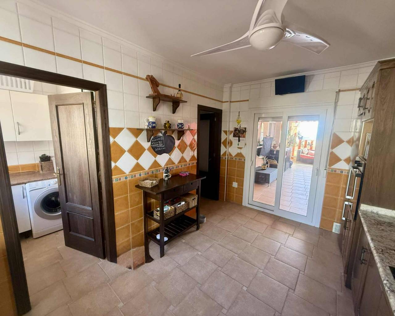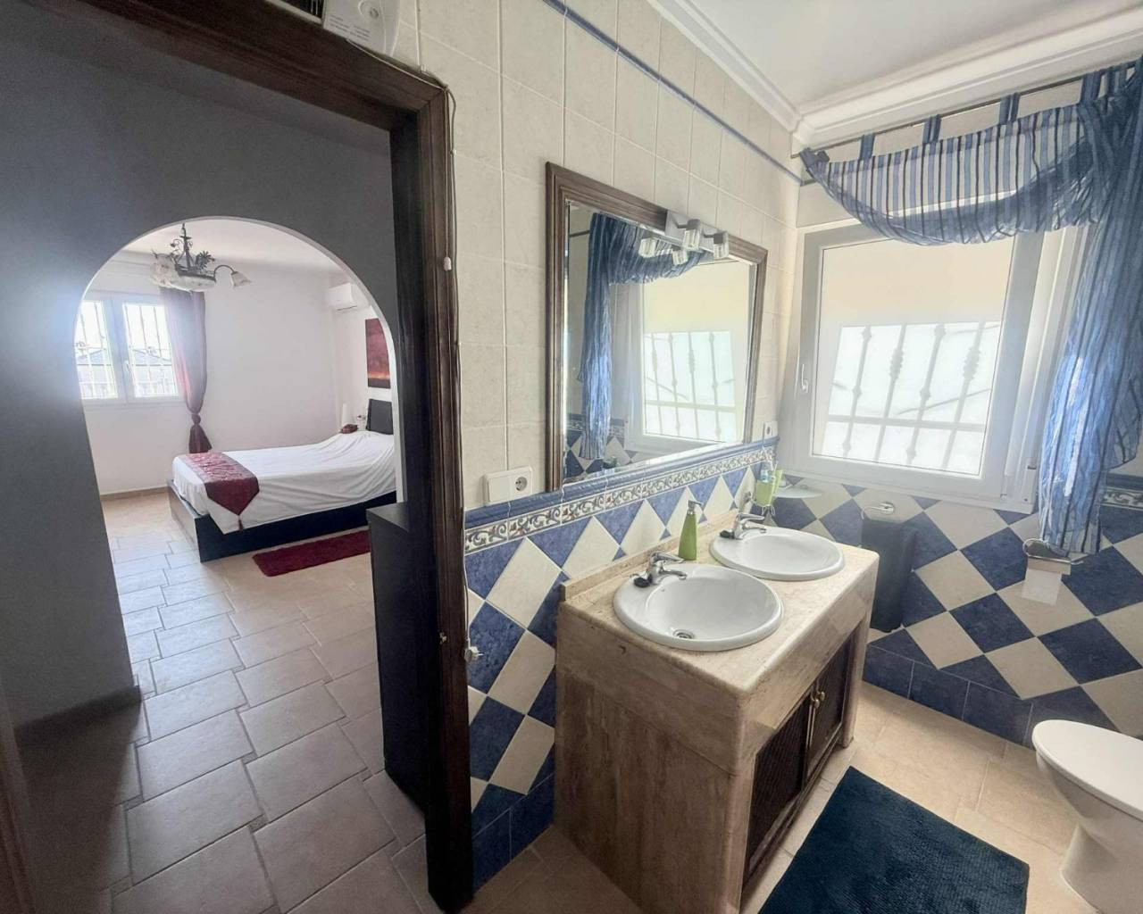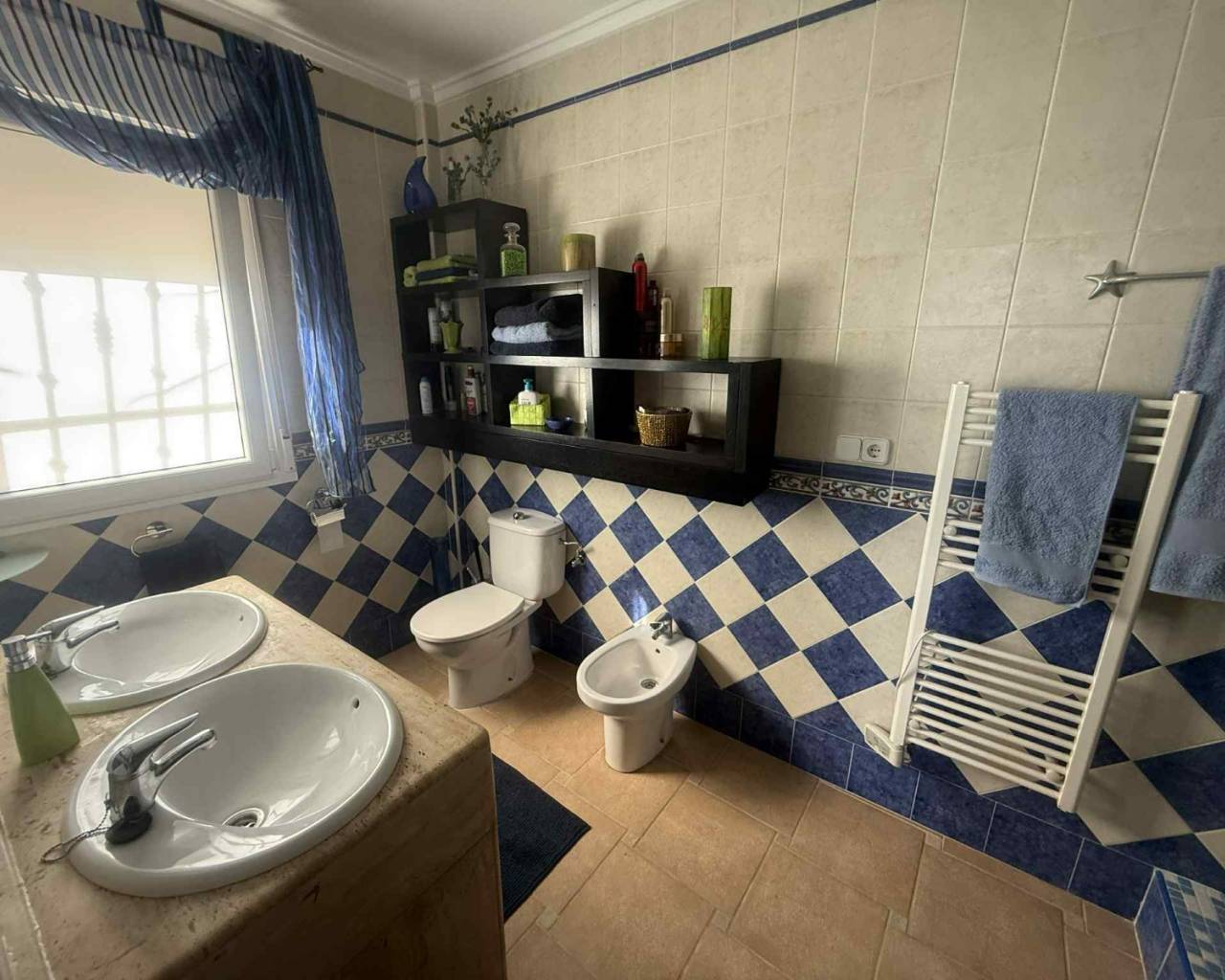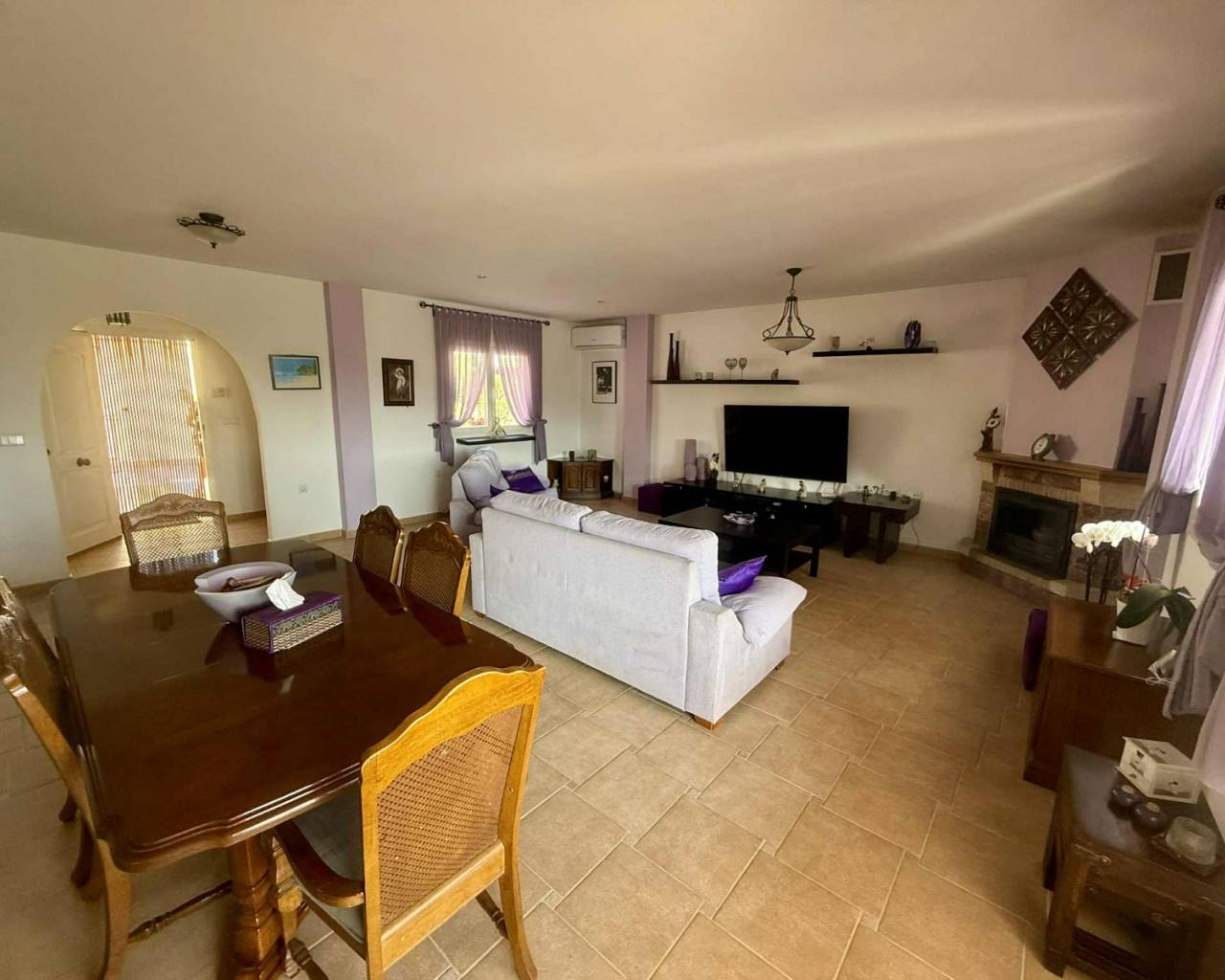 JL Morales präsentiert diese schöne Villa in Lomos de Juliana, nur wenige Minuten von der renommierten Golfanlage La Finca in Algorfa gelegen.Es gibt eine Wohnfläche von etwa 201 m2, verteilt auf zwei Etagen. An der Vorderseite befindet sich ein Doppelcarport und über die Treppe gelangt man zum Haupteingang des Anwesens, mit einer begrünten Terrasse mit verschiedenen Palmen und Stauraum. Sie betreten das Anwesen über eine überdachte Terrasse zur Eingangshalle und somit in den Wohnbereich, wo Sie sofort von dem Licht und der schönen Aussicht begrüßt werden. Das Wohnzimmer hat einen gemütlichen Kamin, aber auch eine Klimaanlage für heiße Tage mit einem offenen Raum als Essbereich, dieser hat Zugang zu einer überdachten Terrasse mit Markise, die rundherum zur Küche geht. Es gibt eine große separate ausgestattete Küche im rustikalen Stil mit Speisekammer. Auf dieser Etage finden Sie auch ein Gäste-WC. Vom Wohnzimmer aus führt eine Treppe in die untere Etage, wo sich auf der rechten Seite das Hauptschlafzimmer mit Klimaanlage, Ankleideraum und eigenem Bad mit Dusche befindet. Auf der anderen Seite befindet sich ein „Empfangsraum“ mit Einbauschränken und Zugang zu einem Badezimmer, zwei Schlafzimmer mit Einbauschränken, ein Abstellraum und ein Büro. Im Flur befindet sich ein Pelletofen, von dem aus man auf die hintere Terrasse gelangt, von der aus man einen schönen Blick auf die Umgebung hat und ein erfrischendes Bad im privaten 10 x 5 m großen Pool genießen kann.Mit einem Grundstück von 1.023 m² bietet diese Villa einen ruhigen und großzügigen Rahmen. Verpassen Sie nicht die Gelegenheit, in diesem Haus zu leben, das Eleganz und Komfort in einer privilegierten Lage vereint - buchen Sie noch heute Ihren Besuch!