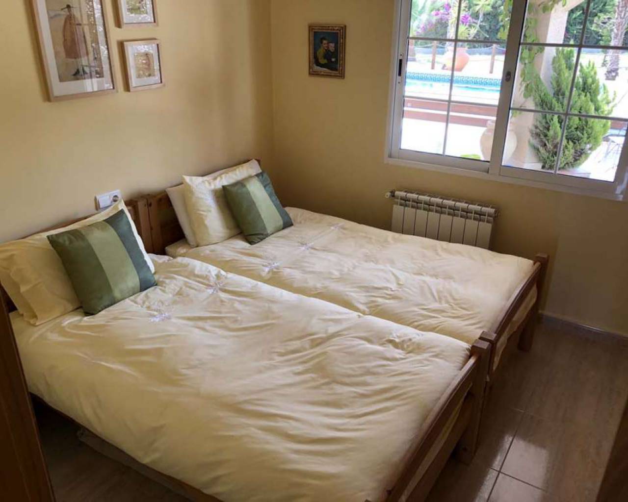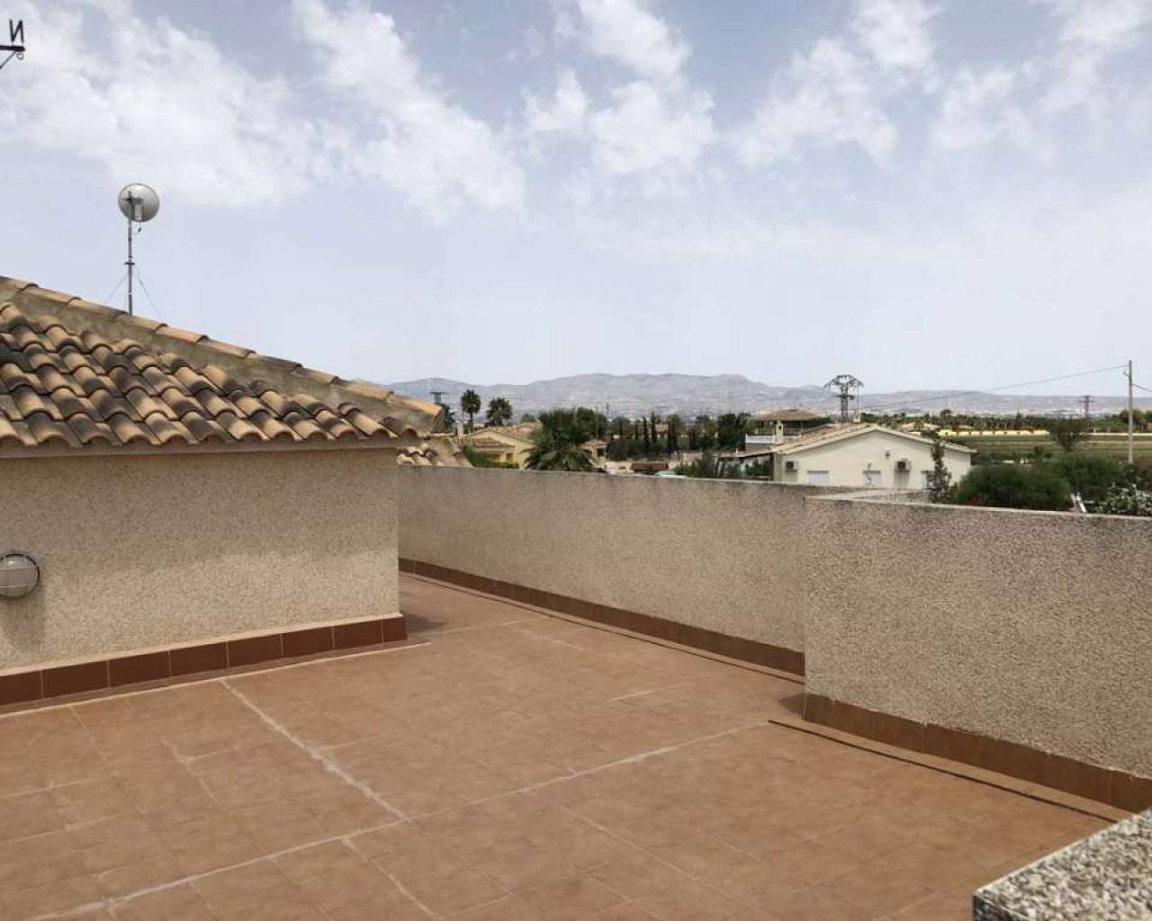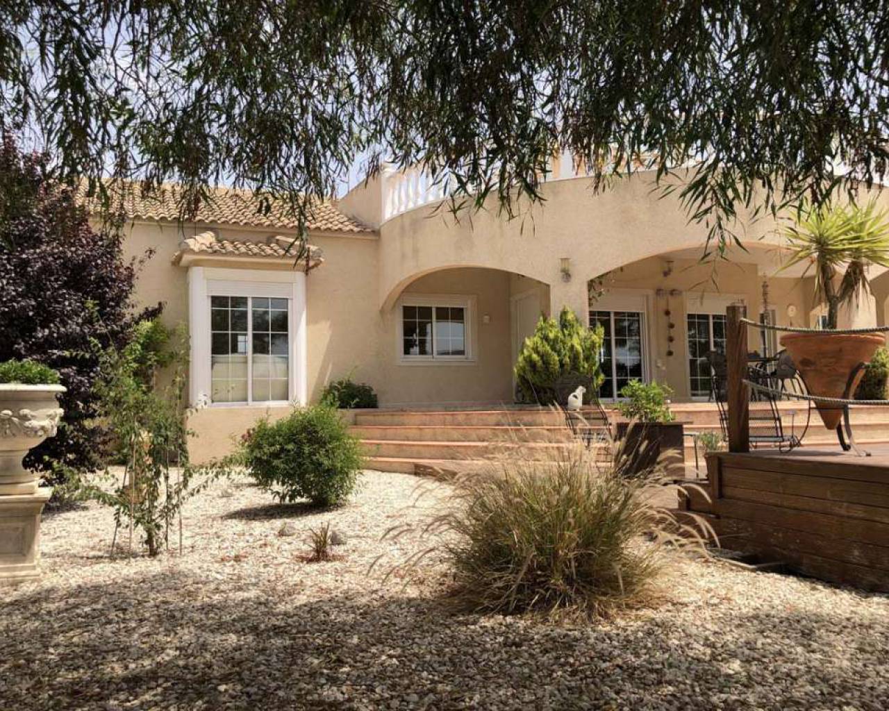 Esta villa independiente muy bien presentada de 209 m2 se encuentra en una parcela totalmente ajardinada de 6.500 m2 en las afueras de Catral. Consta de un gran salón con techos altos y puertas francesas que dan a la terraza, chimenea, comedor, cocina abierta totalmente equipada con lavadero, pasillo con entrada principal a la propiedad, 4 dormitorios de buen tamaño con armarios empotrados. Un baño en suite, y hay un baño familiar. En el exterior hay una gran terraza con vistas a la piscina de 8m x 4m con terrazas de madera, área de barbacoa, baño, solarium en la azotea, edificio de almacenamiento y un amplio garaje. El aire acondicionado frío / calor y la calefacción central de gasoil están instalados en todas partes, también hay un sistema de alarma y una puerta de entrada con control remoto. Esta hermosa casa es atendida por agua corriente, electricidad, teléfono / internet, ubicada en una zona tranquila a solo 5 minutos del pueblo.