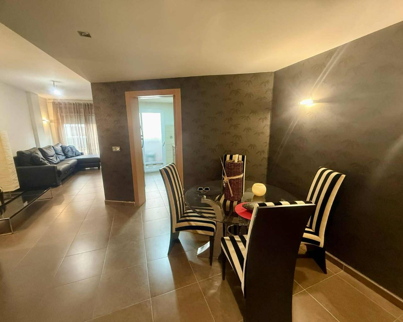 JL Morales Real Estate presenta este espacioso apartamento en la primera planta, a solo unos metros del centro de Almoradí.Tiene una superficie construida de 110 m 2 , que consta de un amplio salón comedor con acceso a un balcón , una cocina independiente totalmente equipada con lavadero. A través del vestíbulo se accede a los tres dormitorios , todos con armarios empotrados. El primer dormitorio tiene acceso a un pequeño patio interior y el principal da a una terraza de unos 20 m², también hay dos baños, uno de ellos en suite. La vivienda se vende amueblada, con aire acondicionado en el salón y el dormitorio principal, además hay una preinstalación para aire acondicionado central. Y hay un ascensor a todas las plantas. Situado en el centro, con todos los servicios a poca distancia, a solo 15 minutos en coche de las hermosas playas de arena de Guardamar.
