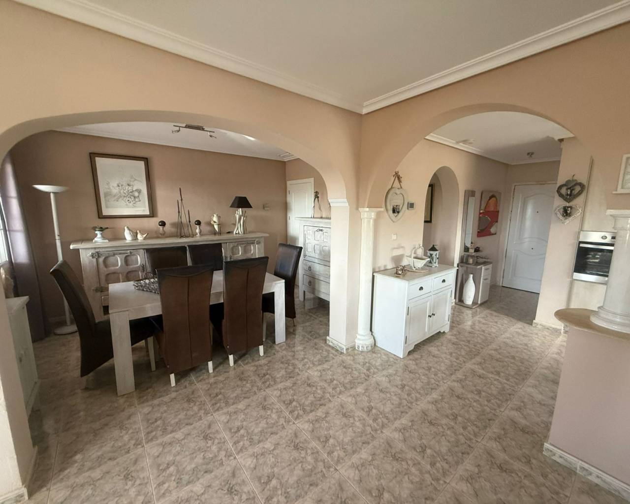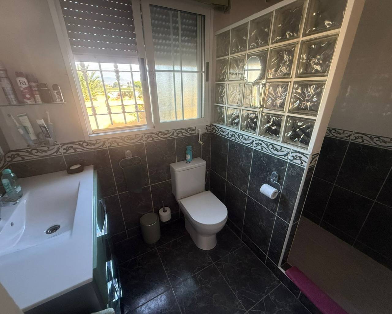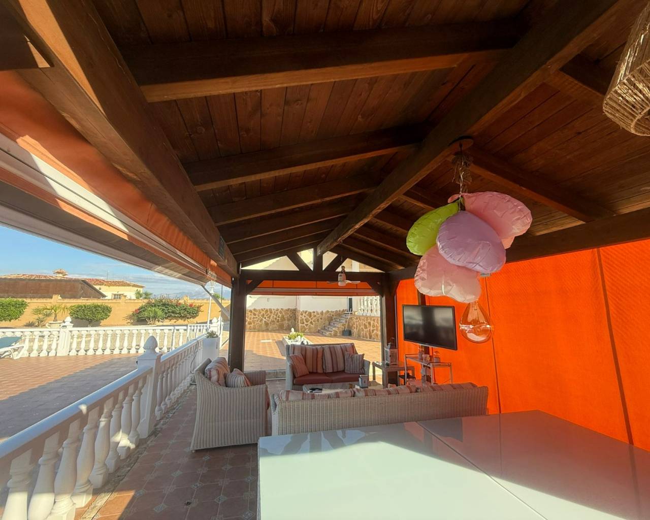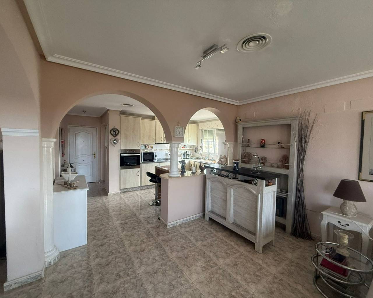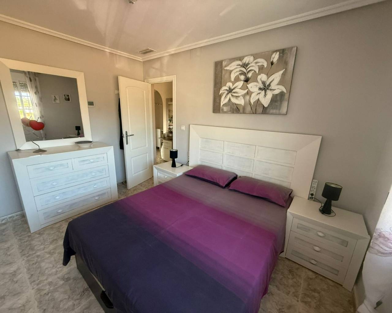 JL Morales Real Estate presenta esta preciosa villa situada en el campo , pero a poca distancia tanto de Dolores como de Catral.Situada en una parcela totalmente vallada con puerta de acceso automática de 2270 m2 , con grava para facilitar el mantenimiento, pero con varias palmeras, arbustos y árboles. Se accede a la vivienda a través de una terraza cubierta con magníficas vistas al campo. Hay un amplio salón comedor (originalmente un dormitorio) y una cocina americana con una puerta trasera que da al jardín, donde también se encuentra un amplio dormitorio con armarios empotrados. A continuación, a través del pequeño vestíbulo, hay un cuarto de baño con bañera a la derecha y un dormitorio con armarios empotrados a la izquierda, que actualmente se utiliza como despacho. Luego está el dormitorio principal, también con armarios empotrados y cuarto de baño en suite con ducha a ras de suelo. La vivienda dispone de aire acondicionado central (frío y calor) regulable por habitaciones, todas las ventanas tienen mosquiteras y rejas de seguridad. En el lateral de la terraza cubierta hay una escalera exterior que conduce a la azotea, con magníficas vistas al campo y a las montañas. Debajo de la escalera hay un lavadero.En la parte trasera del jardín hay una pista de petanca, una cochera, un gran trastero y una caseta de madera/aseo. Y, por supuesto, una piscina de 10 por 5 con terraza, cocina exterior y pérgola de madera, ideal para disfrutar del clima español.A solo unos minutos del centro de Catral y Dolores , a 20 minutos en coche de las hermosas playas de arena de La Marina y Guardamar y a 25 minutos del aeropuerto de Alicante.