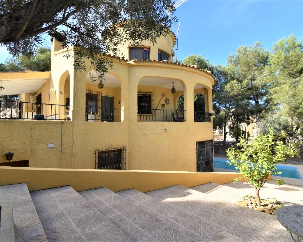 Esta Villa Independiente de Seis Dormitorios con Orientación Este en la zona de Las Filipinas, Villamartín; una popular zona residencial a solo cinco minutos a pie de cafeterías, restaurantes, pequeñas tiendas de conveniencia; importante supermercado a 2 minutos en coche, junto con el centro comercial “La Fuente” y 2 campos de golf; A 10-15 minutos de la costa, donde puede elegir entre playas y una gran cantidad de comodidades, incluido el centro comercial La Zenia Boulevard. Una villa con carácter en una parcela madura privada de 800m2, que comprende: Terraza cubierta curva que ofrece un amplio espacio para comer que luego se abre a una gran área de terrazas que está parcialmente cubierta; ingresando a la propiedad en un amplio hall de entrada curvo, que tiene escaleras que conducen al primer piso; sala de estar con chimenea y amplio arco que conduce a otra sala de estar / comedor; Cocina amueblada estilo americano; lavadero; guardarropa; La sala de estar inferior de esta villa tiene una sala de estar / sala de estar; cuatro dormitorios dobles, principal con puertas correderas al jardín; un dormitorio individual; dos baños más; Gran dormitorio doble con baño en suite en el primer piso. La villa está rodeada por los terrenos maduros en los que se encuentra, incluida una piscina privada de 8x4 con muchas terrazas alrededor, muchos árboles altos y maduros y acceso a la entrada, área de barbacoa. La propiedad también se beneficia de una gran zona de almacenamiento en la planta baja y calefacción central. Una casa familiar verdaderamente excelente.