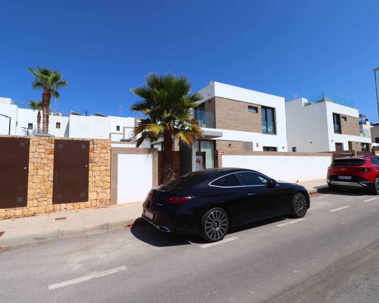 Esta villa independiente de esquina, moderna y elegante, como nueva, de tres dormitorios en Benijofar se encuentra en el corazón de esta bulliciosa y tradicional ciudad española, entre Ciudad Quesada y Rojales. Situado a pocos minutos a pie de muchas de las comodidades e instalaciones que se ofrecen, con todo lo que pueda necesitar, mientras que las playas y los paseos marítimos más cercanos están a solo 12 minutos en coche en Guardamar del Segura. Esta propiedad construida en 2022, consta en la planta baja de una cocina abierta totalmente equipada con barra de desayuno; sala de estar/comedor con acceso al frente, hermoso jardín embaldosado de bajo mantenimiento con estacionamiento fuera de la calle y piscina privada; un dormitorio doble; y un cuarto de baño familiar; en la primera planta hay otros dos dormitorios dobles, el principal con acceso a la gran terraza, así como al rellano; y un segundo baño con ducha, con acceso Juliette. Las escaleras internas conducen a la construcción inferior extremadamente espaciosa e incluida con muchas posibilidades de almacenamiento adicional, alojamiento, sala de juegos, sala de cine, etc., que ya se beneficia de un cuarto de instalaciones y de servicios públicos. Muchos extras incluyen armarios empotrados, aire acondicionado en todas partes, persianas eléctricas, sistema de aerotermia, piscina privada, estacionamiento, portón motorizado, iluminación interna y externa, acabados bajo construcción, electrodomésticos y un producto terminado súper genial. ¡Simplemente increíble, disponible por 440.000 €!