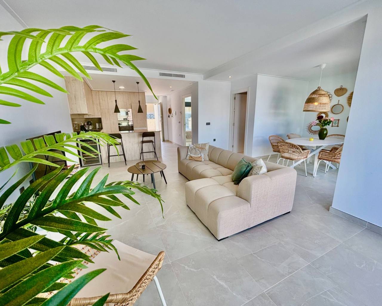 Esta moderna villa independiente de dos dormitorios, con orientación este y oeste, se encuentra en Benijófar, en una zona muy cotizada de la Costa Blanca Sur, a tan solo 2 minutos a pie de numerosos servicios y comodidades, con supermercados en las inmediaciones y a solo 12 minutos en coche de las playas más hermosas. Esta elegante y contemporánea propiedad cuenta con una cocina americana totalmente equipada con barra, un luminoso salón-comedor con acceso al jardín delantero y a la terraza. El comedor de la planta baja puede convertirse fácilmente en el tercer dormitorio, como era originalmente. Dispone de dos dormitorios dobles: uno en la planta baja y otro en la primera planta con baño privado con ducha y solárium, ambos con armarios empotrados. La propiedad también incluye dos modernos y elegantes cuartos de baño con ducha, que ofrecen comodidad y practicidad. El salón y todos los dormitorios cuentan con aire acondicionado para garantizar el confort durante todo el año. El solárium privado dispone de una cocina exterior, ideal para el entretenimiento, mientras se disfruta de vistas panorámicas de los alrededores, el campo, las montañas y las espectaculares puestas de sol. En el exterior, la villa ofrece una piscina privada con zona de estar integrada, aparcamiento privado y un práctico trastero en el jardín delantero. Esta preciosa villa moderna combina a la perfección un diseño elegante con la comodidad diaria, brindando una magnífica oportunidad para residir todo el año o como una lujosa casa de vacaciones en la Costa Blanca Sur.