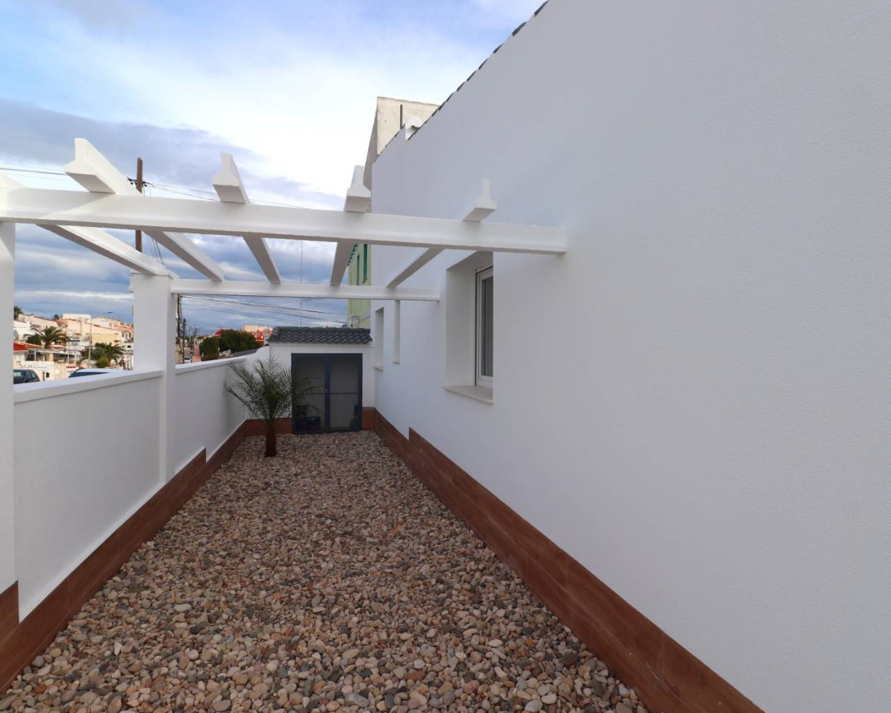 Este bungalow esquinero de tres dormitorios con orientación oeste en Quesada se encuentra en una zona popular y práctica, con un conocido bar-restaurante y la piscina municipal a solo cinco minutos a pie. Hay un supermercado a unos diez minutos a pie, mientras que el campo de golf La Marquesa se encuentra a cinco minutos en coche. Las hermosas playas y el litoral de la Costa Blanca Sur están a unos 15 minutos. Esta atractiva propiedad, de una sola planta, ha sido renovada para crear un ambiente moderno y diáfano. El luminoso salón cuenta con amplias puertas correderas acristaladas que se abren directamente al jardín, lo que realza la armonía entre el interior y el exterior. La cocina americana equipada incluye una barra americana y una puerta que da a un patio con un práctico lavadero. Hay tres dormitorios dobles, dos de ellos con armarios empotrados, además de un elegante baño familiar con ducha a ras de suelo. Ubicada en una amplia parcela esquinera de 164 m², el exterior está pavimentado con grava y baldosas para facilitar el mantenimiento y ofrece amplio espacio para añadir una piscina privada si se desea. También se incluye aparcamiento. Este bungalow bien presentado es ideal como residencia permanente, casa de vacaciones u oportunidad de inversión, ofreciendo comodidad, espacio y una excelente ubicación en la Costa Blanca Sur.