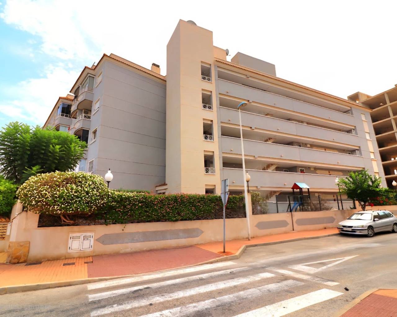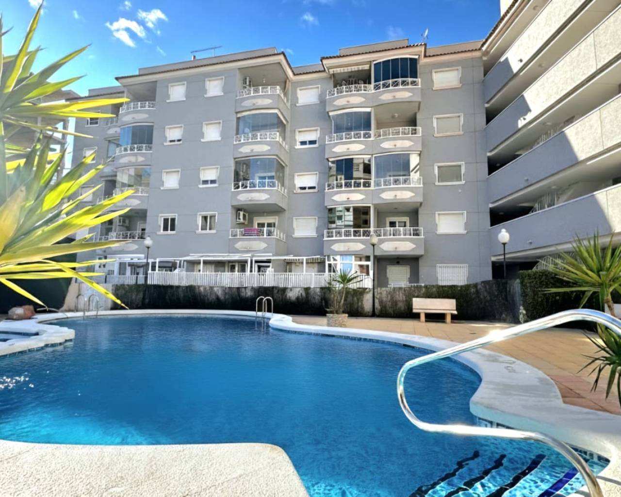 Cet appartement deux chambres, exposé est et situé au premier étage, à Guardamar del Segura, à proximité du cœur de cette ville côtière prisée. La magnifique plage et sa promenade, bordée de nombreux cafés, bars et restaurants, sont à seulement 5 minutes en voiture, tout comme un supermarché. Le parcours de golf La Marquesa à Rojales est accessible en environ 10 minutes en voiture. L'appartement offre un espace de vie lumineux et confortable, climatisé et doté de doubles portes-fenêtres coulissantes donnant sur une terrasse privée donnant sur la piscine commune. Il comprend une cuisine séparée équipée, deux chambres doubles – la principale avec placards intégrés et climatisation – et une salle de bains familiale. L'appartement comprend également un ascenseur, un solarium commun et une place de parking attenante. Une opportunité idéale comme résidence secondaire, investissement ou résidence principale dans le quartier prisé de Guardamar del Segura, sur la Costa Blanca Sud.