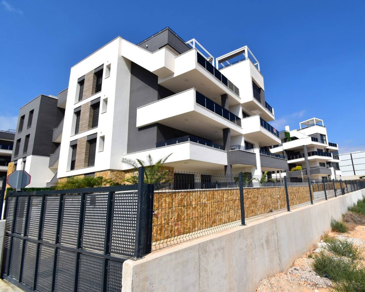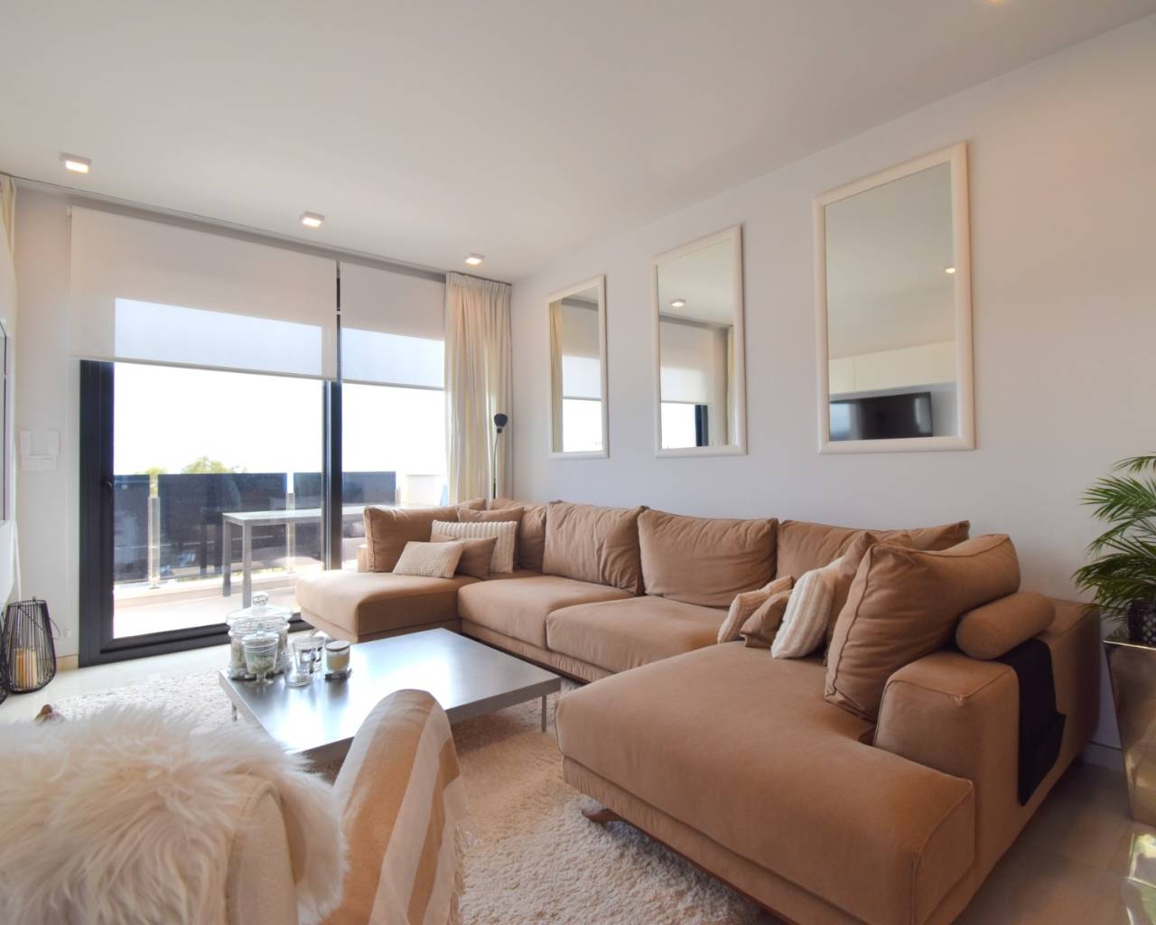 Ce superbe appartement de trois chambres, situé au deuxième étage d'un immeuble exposé plein sud à Playa Flamenca, bénéficie d'un emplacement privilégié sur la Costa Orihuela, à proximité de nombreux commerces et services, notamment des centres commerciaux, des supermarchés, des cafés, des restaurants et à quelques minutes en voiture des magnifiques plages et de plusieurs terrains de golf. Construit en 2024, ce magnifique appartement est en excellent état et offre un confort moderne et un style de vie élégant. D'une superficie généreuse de 114 m², il comprend un salon/salle à manger lumineux climatisé avec double porte-fenêtre coulissante donnant sur une superbe terrasse panoramique, idéale pour savourer son café du matin ou ses repas du soir tout en admirant la vue sur la mer et les environs. La cuisine américaine équipée présente des finitions haut de gamme et un design contemporain. L'appartement dispose de trois chambres, toutes climatisées et dotées de placards intégrés, ainsi que de deux salles de douche modernes. L'immeuble est équipé d'un ascenseur et propose de superbes équipements communs : une belle piscine entourée de jardins paysagers, un sauna et un jacuzzi communs, une salle de sport et un parking souterrain. Un appartement élégant, prêt à emménager, offrant le mélange parfait de luxe et de commodité sur la Costa Blanca Sud.