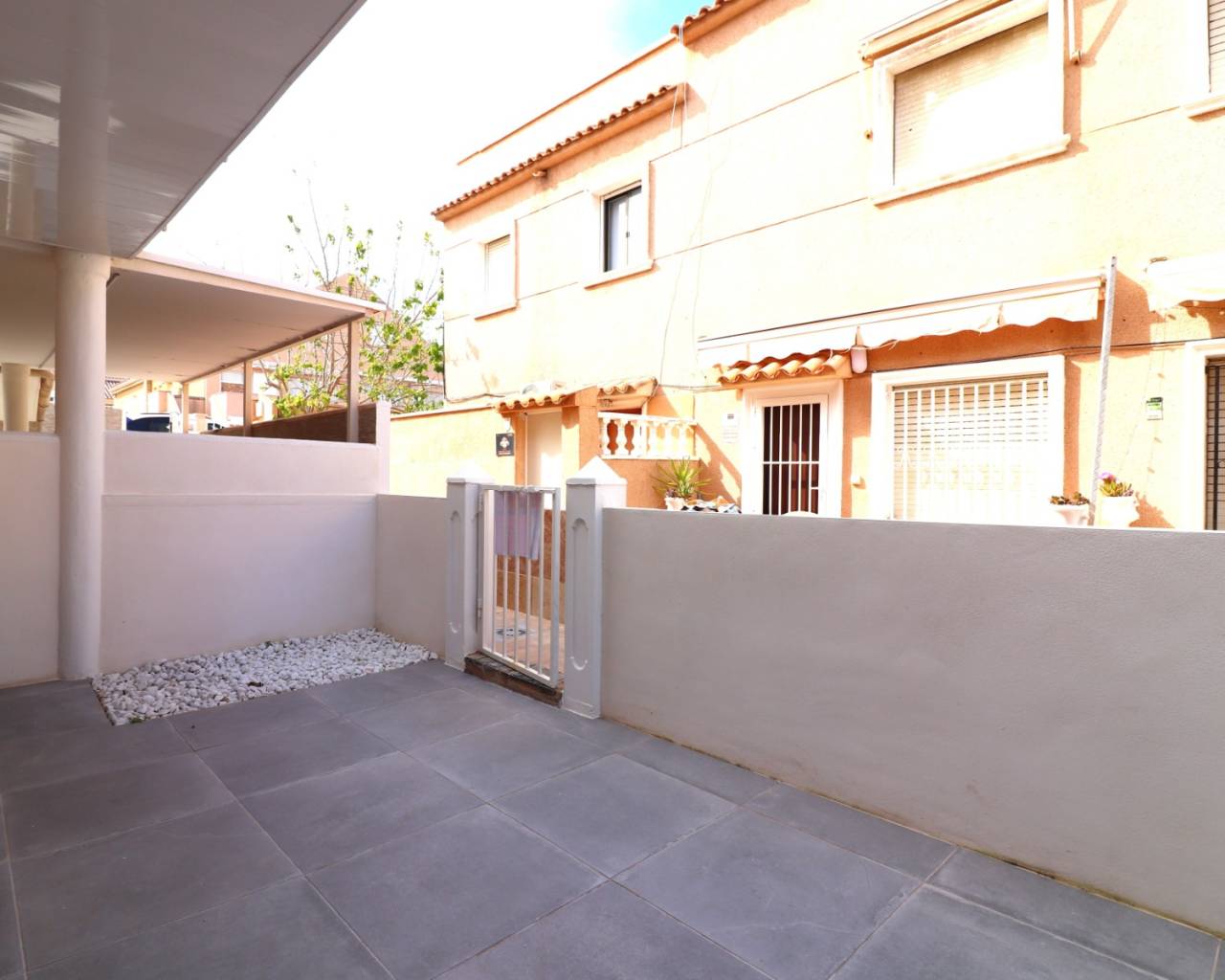 Ce superbe appartement de trois chambres au rez-de-chaussée, situé à Torre la Mata, se trouve à deux pas d'une magnifique plage, à proximité de nombreux cafés, bars et restaurants. Ce littoral splendide s'étend jusqu'à Guardamar del Segura, à environ 5 minutes en voiture, tandis que Torrevieja est à seulement 10 minutes et le golf le plus proche est accessible en une vingtaine de minutes. Ce bien, en excellent état, offre une surface habitable de 66 m² et bénéficie de jardins carrelés à l'avant et à l'arrière, parfaits pour les repas en plein air, la détente ou les réceptions. À l'intérieur, vous trouverez un salon confortable et une cuisine américaine équipée, créant un espace de vie convivial. L'appartement comprend deux chambres doubles, dont une suite parentale avec accès direct au jardin, ainsi qu'une chambre simple et une salle de douche moderne avec douche à l'italienne. Parmi ses atouts, la climatisation et l'absence de charges de copropriété, ce qui en fait un bien idéal pour un entretien minimal. Une opportunité fantastique pour une résidence secondaire, un investissement locatif ou une résidence principale sur la Costa Blanca Sud, à quelques pas de la plage.
