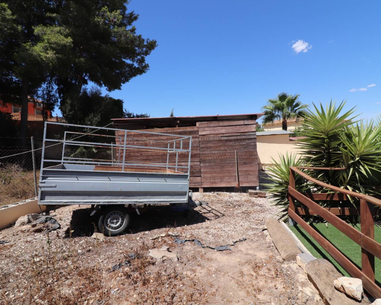 Deze karaktervolle, op het oosten gelegen vrijstaande villa met drie slaapkamers in Lomas de la Juliana, een prestigieuze urbanisatie gelegen tussen het dorp Algorfa en het 5* La Finca Golf Hotel & Spa Resort, op slechts een paar minuten rijden en u vindt er voorzieningen , met bars, restaurants, winkels, banken, apotheek, medisch centrum... De stranden van Guardamar of Orihuela Costa zijn met de auto in ongeveer 20 minuten te bereiken. Het pand straalt karakter uit, beslaat een perceel van 1140 m2 en is verdeeld over twee niveaus. De begane grond is bijna overal voorzien van balken en heeft een woonkamer met open haard in de hoek; ruime ingerichte keuken/eetkamer met prachtige massief houten boogdeuren, die leiden naar nog meer ruimte die u volledig aan uw eigen behoeften kunt aanpassen; tweepersoonsslaapkamer met inbouwkasten; eenpersoonsslaapkamer met inloopkast en tevens toegang tot een andere kamer die eventueel als slaapkamer gebruikt kan worden; familie doucheruimte. Een trap leidt vanuit de keuken naar de woonkamer, die ook toegankelijk is via een externe trap naar het grote glazen entreeterras, dat naar de woonkamer leidt; aparte ingerichte keuken; twee tweepersoonsslaapkamers, master met eigen badkamer; eenpersoonskamer; verdere familiebadkamer. Een trap vanaf het gebogen overdekte terras leidt naar het zwembad, plus een externe trap naar het solarium, waar u kunt genieten van het prachtige uitzicht op het platteland en de bergen. De aangelegde tuin met een verscheidenheid aan planten, bomen en struiken heeft ook een privézwembad van 10 x 5 meter en parkeergelegenheid op eigen terrein; bijgebouwen die aandacht behoeven. U hoeft deze eigenzinnige villa alleen maar te bezichtigen om te kunnen waarderen wat er wordt aangeboden.