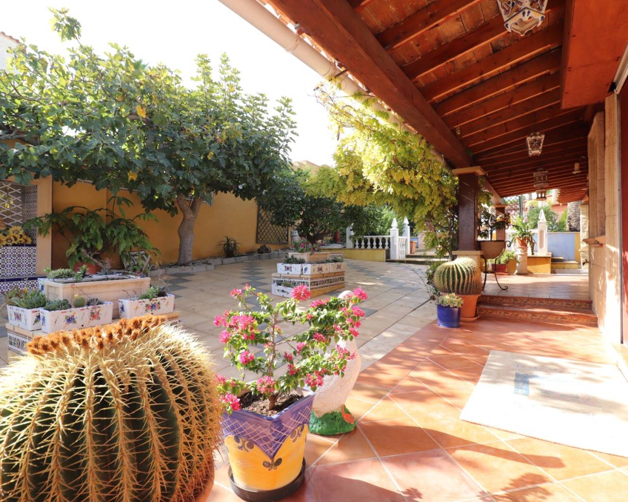Deze ongelooflijke vrijstaande villa met drie slaapkamers in Lomas de la Juliana ligt in een prestigieuze woonwijk, op slechts 5 minuten rijden van het dorp Algorfa en het luxe 5* La Finca Golf Resort. Gelegen op minder dan 10 minuten van Almoradí, Quesada en Benijofar, en op slechts 20 minuten rijden van de prachtige stranden van de Costa Blanca Zuid, biedt deze accommodatie een perfecte mix van rust en gemak. Gelegen op een verhoogd aangelegd perceel van 1.935 m2, geniet de villa van 264 m2 van een immens uitzicht op het platteland en de bergen, samen met spectaculaire zonsondergangen. Alle accommodaties zijn zorgvuldig ingedeeld op één niveau, met een ruime woonkamer met toegang tot een terras, een gezellige zithoek, een aparte ingerichte keuken in mediterrane stijl, een bijkeuken en een eetkamer met kamerbrede glazen gordijnen, perfect om het hele jaar door van het uitzicht te genieten. De villa beschikt over drie tweepersoonsslaapkamers, waarvan de hoofdslaapkamer een split-level heeft met balken en 2 sets dubbele kledingkasten, allemaal met en-suite badkamers, waarvan er één een Jack-and-Jill is. Buiten is het 4 x 9 privézwembad, aan de achterkant van het pand, omgeven door volwassen beplanting en bomen, patio's met voldoende faciliteiten voor entertainment, aangevuld met voldoende off-road parkeergelegenheid en een dubbele garage van 54 m2. Extra functies zijn onder andere centrale verwarming, airconditioning, inbouwkasten, zonnepanelen voor het verwarmen van water en een waterreserve van 5 tanks. Dit uitzonderlijke pand biedt werkelijk een luxe en serene levensstijl in het hart van de Costa Blanca Zuid.