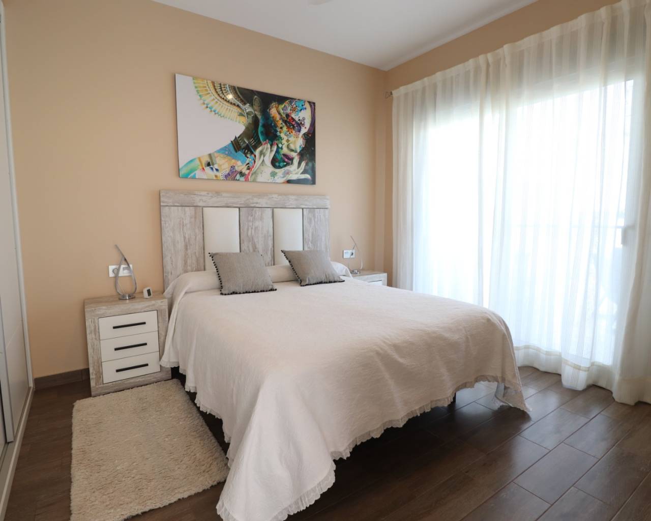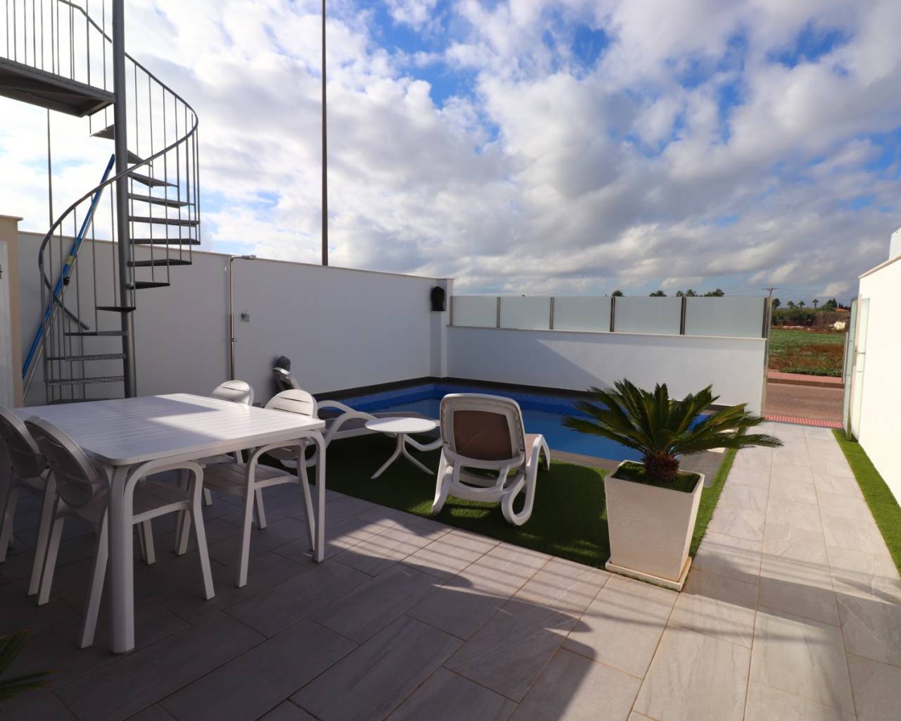 Deze moderne, op het zuiden georiënteerde, halfvrijstaande villa met drie slaapkamers in Daya Vieja ligt aan de rand van dit charmante en rustige Spaanse dorp, op slechts 5 minuten lopen van lokale bars en restaurants en op slechts 10 minuten rijden van de prachtige stranden van de Costa Blanca Zuid. De woning biedt een prachtig open uitzicht over de bergen, het landschap en de omliggende citrusboomgaarden, en vormt een ideale balans tussen modern wonen en een ontspannen landelijke omgeving. Deze stijlvolle woning is gebouwd volgens een hoge moderne standaard en heeft een woonoppervlakte van 133 m² op een privéperceel van 179 m². De begane grond bestaat uit een lichte en ruime woon-/eetkamer met airconditioning en dubbele schuifdeuren die direct toegang geven tot de betegelde tuin, afgewerkt met kunstgras en voorzien van een privézwembad en een praktische berging. De open, volledig ingerichte keuken is modern en goed ontworpen, perfect voor gezinsleven of om gasten te ontvangen. Er zijn drie tweepersoonsslaapkamers, allemaal met airconditioning. De hoofdslaapkamer bevindt zich op de begane grond en beschikt over een inloopkast en een en-suite badkamer met douche. Boven vindt u nog twee tweepersoonsslaapkamers met inbouwkasten; een daarvan heeft toegang tot een privéterras, dat ook van buitenaf bereikbaar is. In totaal zijn er twee moderne doucheruimtes – één op elke verdieping. Extra voorzieningen zijn onder andere horren in alle kamers, elektrische rolgordijnen en een veelzijdige ruimte onder het huis die gebruikt kan worden als speel- of entertainmentruimte, extra slaapkamer, lounge of zelfs kantoor. Een prachtig gepresenteerde, direct bewoonbare villa met modern comfort, een adembenemend uitzicht en een rustige locatie – perfect voor permanent wonen of een luxe vakantieverblijf aan de Costa Blanca Zuid.