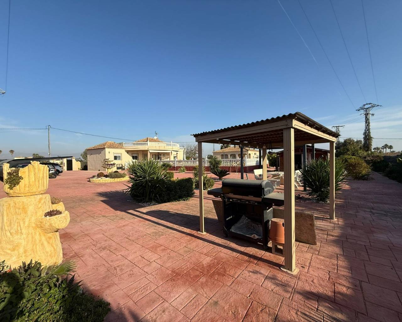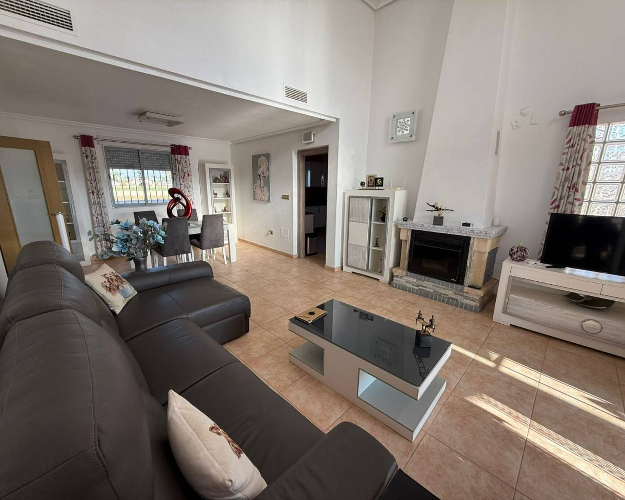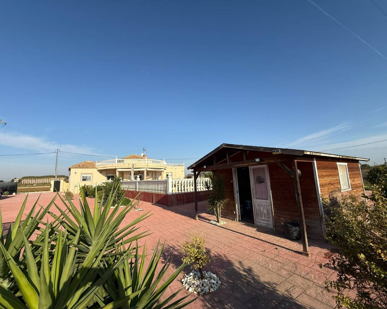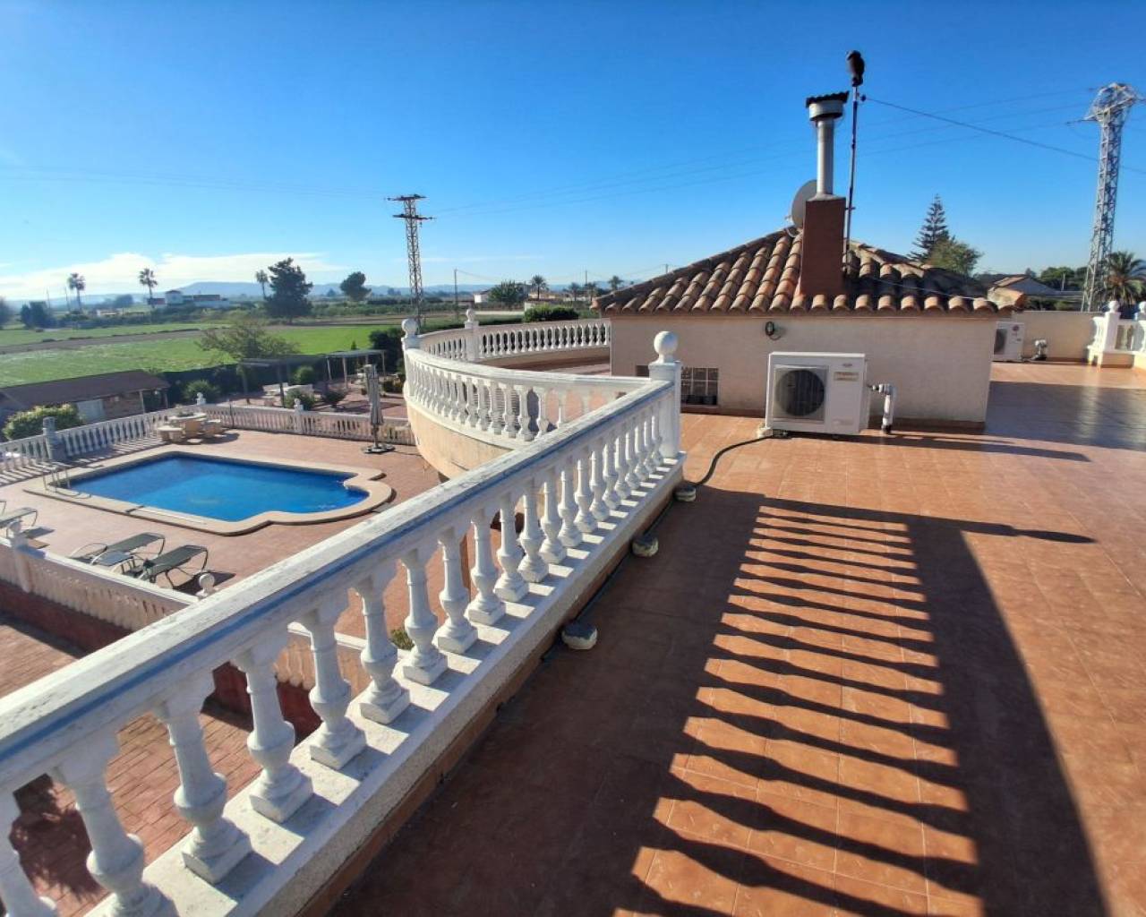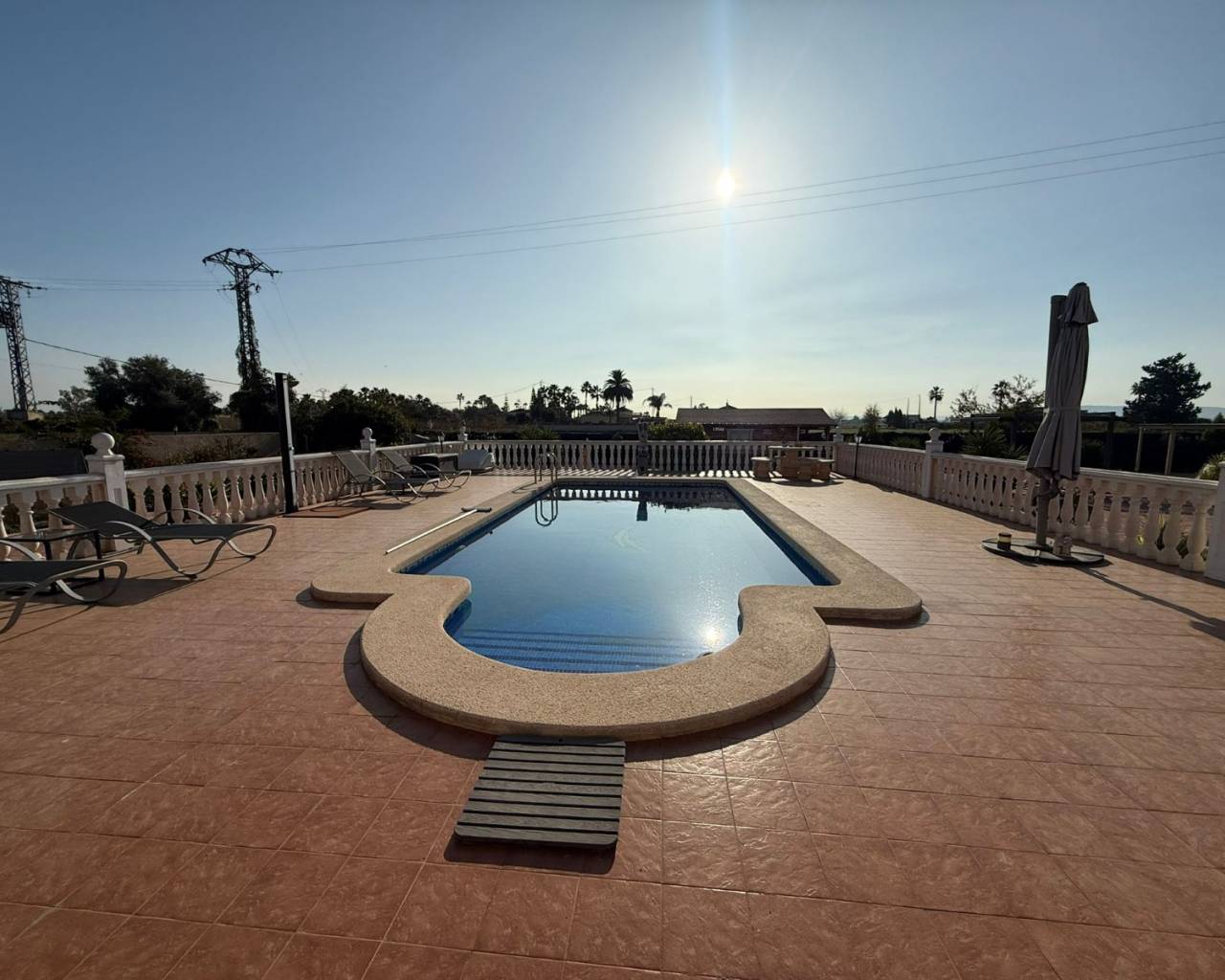 JL Morales Real Estate presents this charming countryside property, set in a peaceful location yet only five minutes from all amenities. It offers an ideal blend of tranquillity, space and comfort. The home is ideally situated just 20 minutes from the beautiful beaches of Guardamar and 30 minutes from Alicante International Airport, making it perfect for both holidays and full-time living.Upon entering, the hallway leads to the left into a spacious and bright living room featuring high ceilings, a pellet stove and a pleasant dining area. Adjacent to this space is the large separate kitchen. The master bedroom includes a dressing room and an ensuite bathroom with a modern walk-in shower. A separate guest toilet completes this side of the home.On the right side of the hallway, you will find two comfortable bedrooms with built-in wardrobes and a second bathroom with space for a washing machine and dryer. The home is sold furnished and comes equipped with mosquito screens and central air conditioning for year-round comfort.From the living room, you step out onto a covered terrace that flows into a sunny terrace with a swimming pool, offering beautiful open views over the surrounding countryside. The fully fenced plot of 1,734 m² is landscaped with various plants and trees and requires minimal maintenance. A double carport, wooden garden shed, pergola seating area and barbecue complete the outdoor amenities. A staircase on the side of the house leads to the rooftop terrace, where the panoramic views are even more striking.