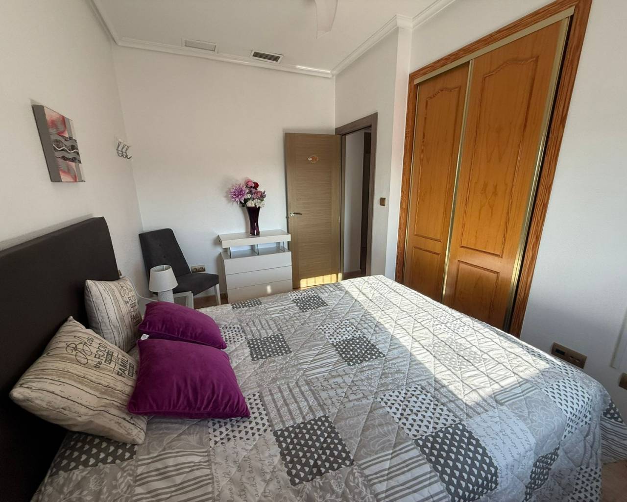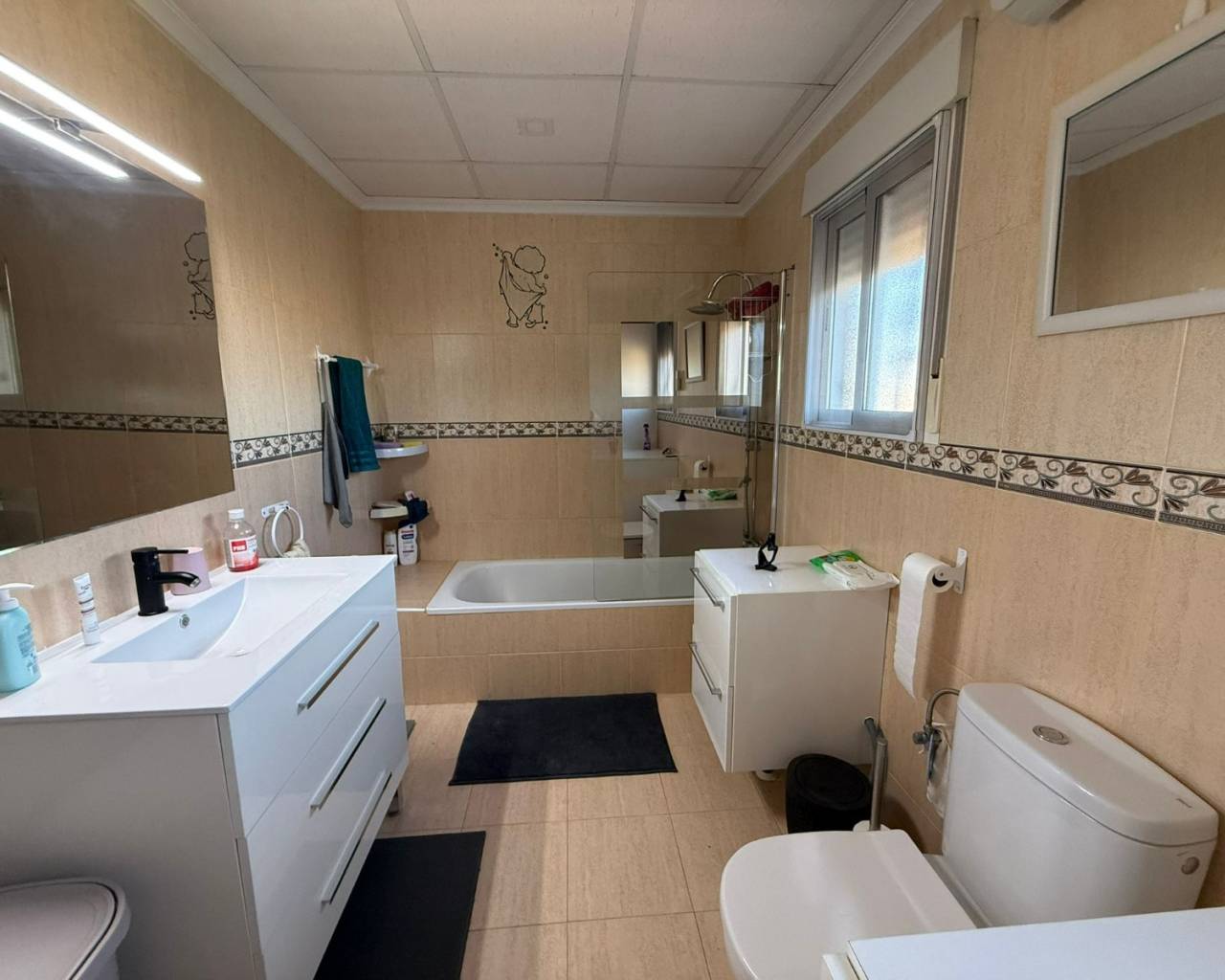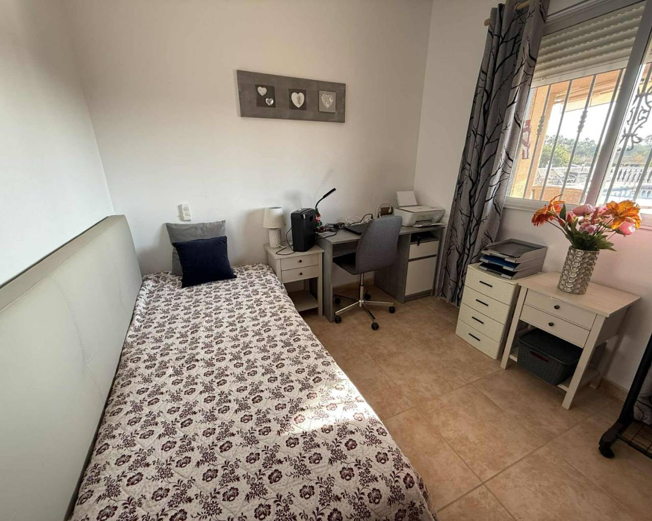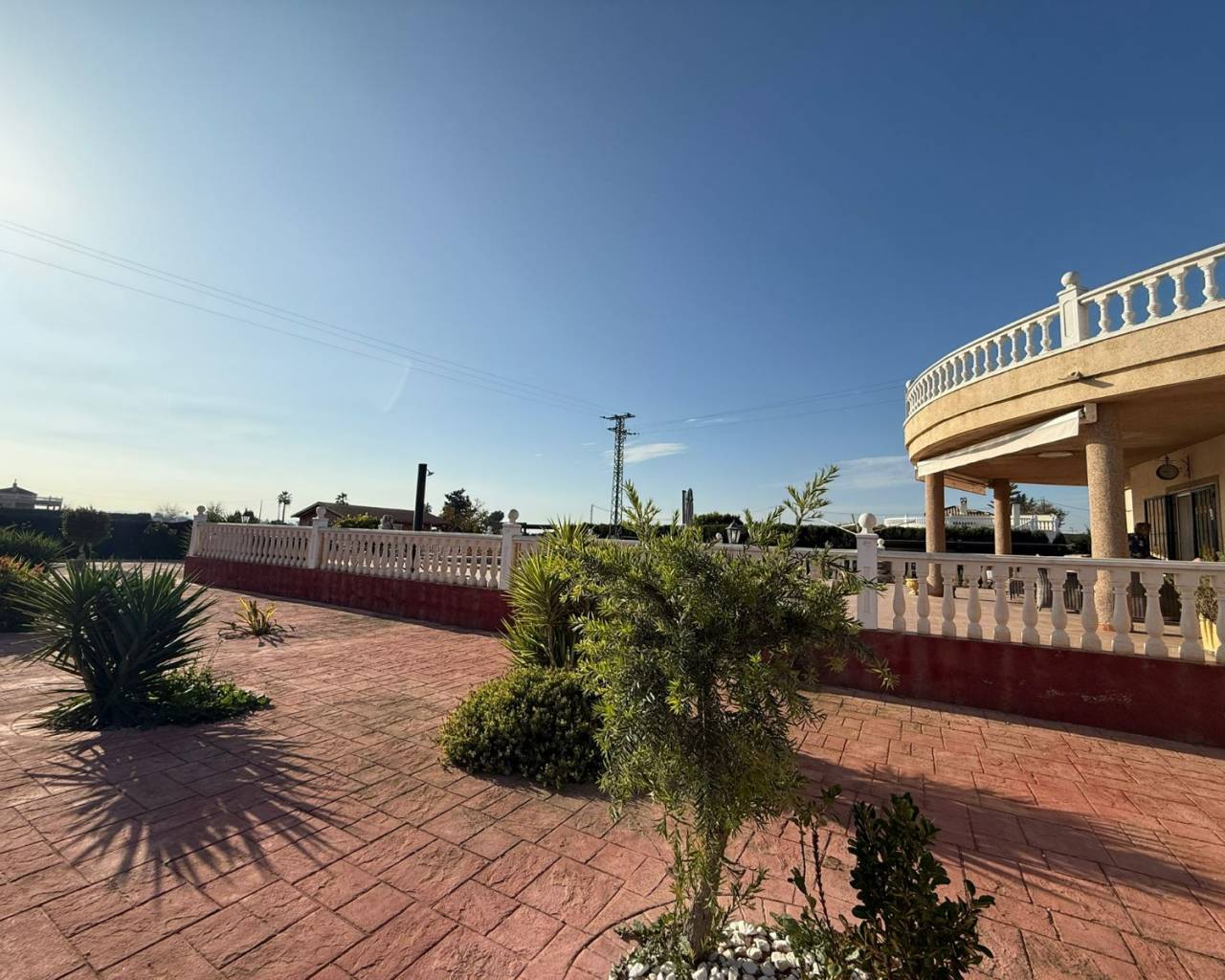 JL Morales Real Estate presents this charming countryside property, set in a peaceful location yet only five minutes from all amenities. It offers an ideal blend of tranquillity, space and comfort. The home is ideally situated just 20 minutes from the beautiful beaches of Guardamar and 30 minutes from Alicante International Airport, making it perfect for both holidays and full-time living.Upon entering, the hallway leads to the left into a spacious and bright living room featuring high ceilings, a pellet stove and a pleasant dining area. Adjacent to this space is the large separate kitchen. The master bedroom includes a dressing room and an ensuite bathroom with a modern walk-in shower. A separate guest toilet completes this side of the home.On the right side of the hallway, you will find two comfortable bedrooms with built-in wardrobes and a second bathroom with space for a washing machine and dryer. The home is sold furnished and comes equipped with mosquito screens and central air conditioning for year-round comfort.From the living room, you step out onto a covered terrace that flows into a sunny terrace with a swimming pool, offering beautiful open views over the surrounding countryside. The fully fenced plot of 1,734 m² is landscaped with various plants and trees and requires minimal maintenance. A double carport, wooden garden shed, pergola seating area and barbecue complete the outdoor amenities. A staircase on the side of the house leads to the rooftop terrace, where the panoramic views are even more striking.
