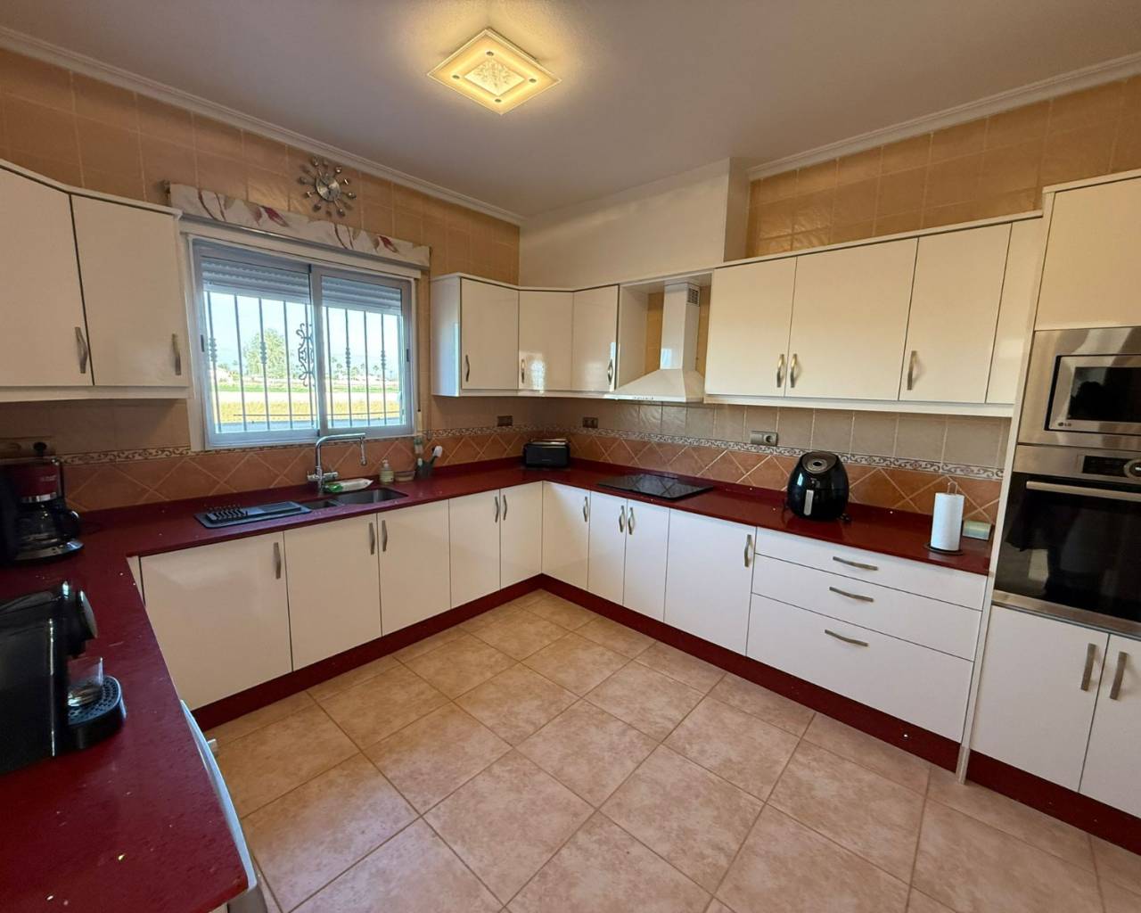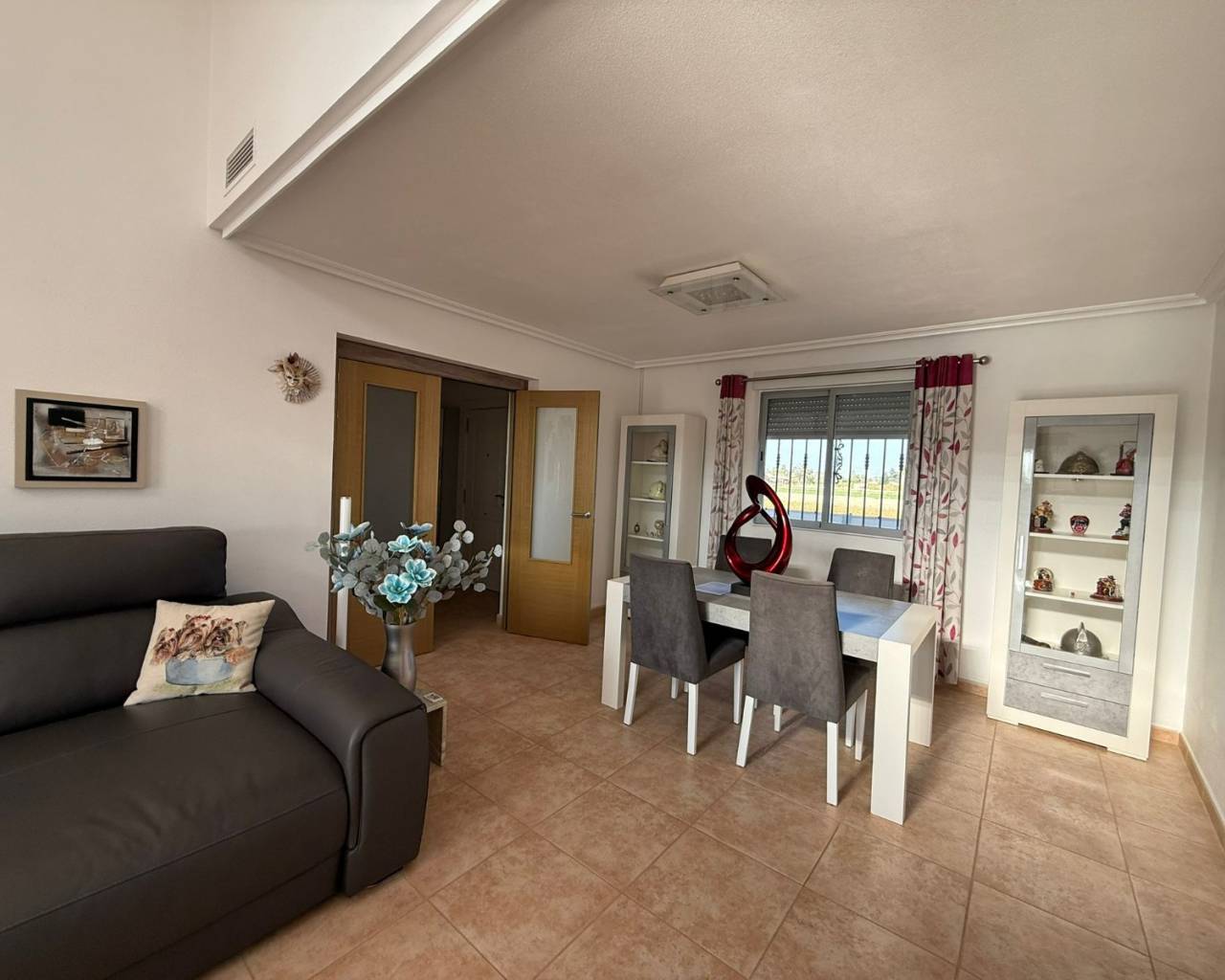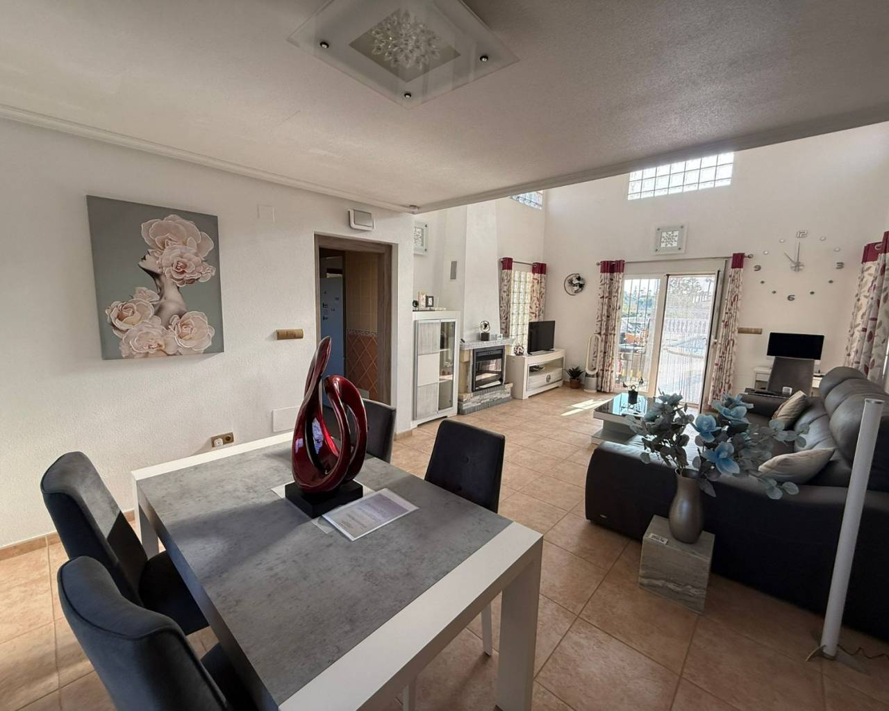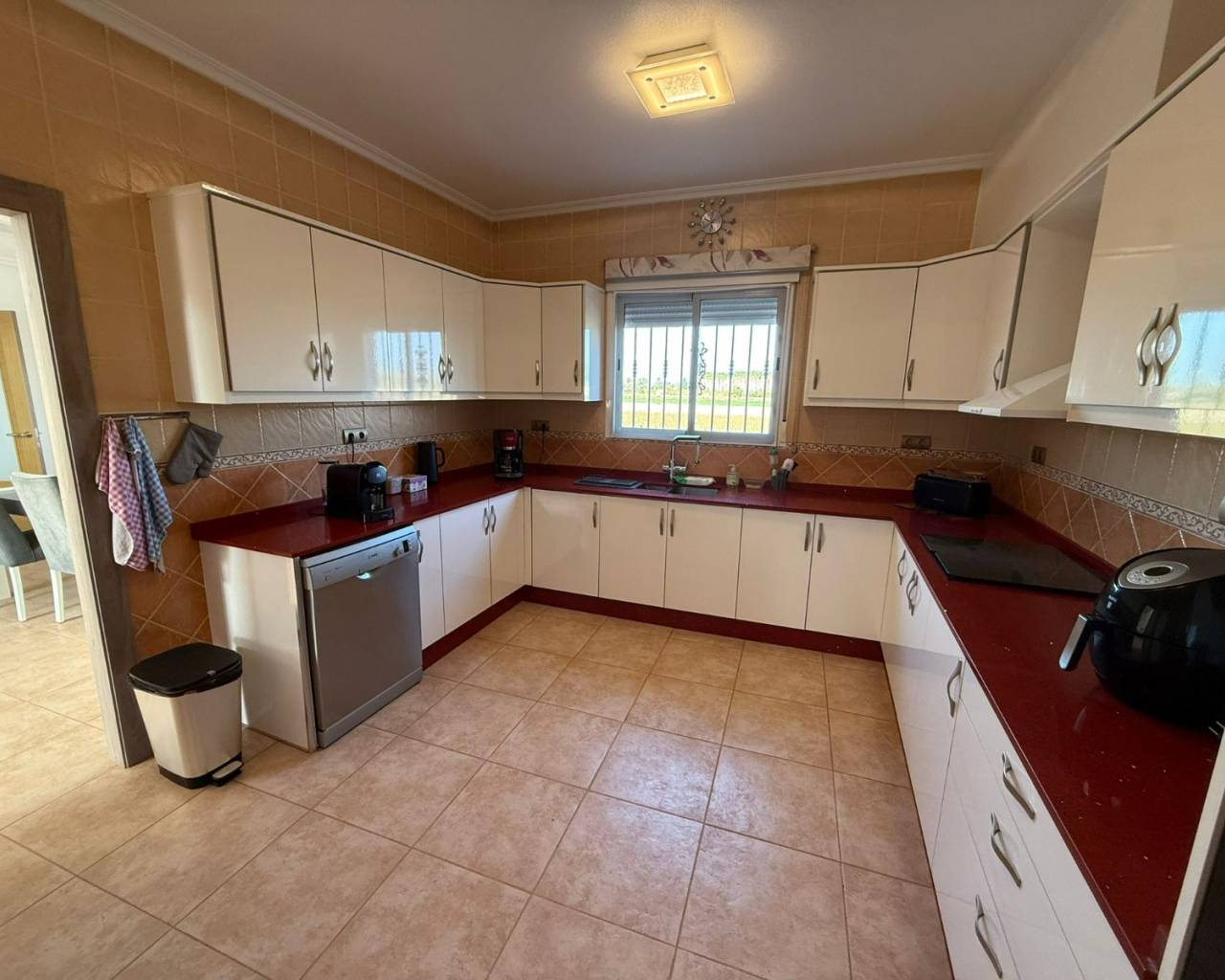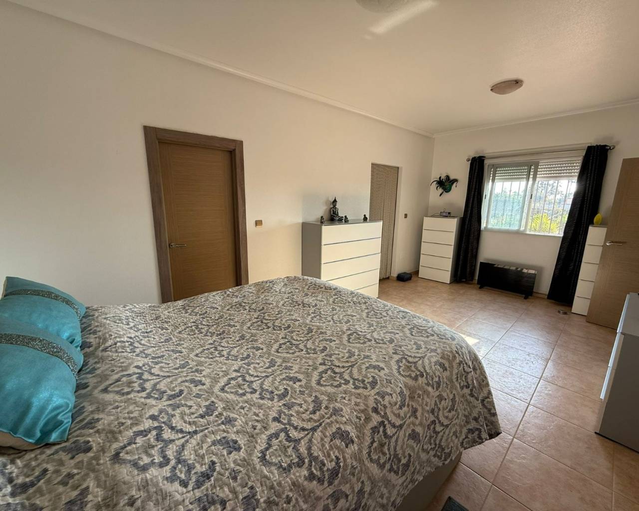 JL Morales Real Estate presents this charming countryside property, set in a peaceful location yet only five minutes from all amenities. It offers an ideal blend of tranquillity, space and comfort. The home is ideally situated just 20 minutes from the beautiful beaches of Guardamar and 30 minutes from Alicante International Airport, making it perfect for both holidays and full-time living.Upon entering, the hallway leads to the left into a spacious and bright living room featuring high ceilings, a pellet stove and a pleasant dining area. Adjacent to this space is the large separate kitchen. The master bedroom includes a dressing room and an ensuite bathroom with a modern walk-in shower. A separate guest toilet completes this side of the home.On the right side of the hallway, you will find two comfortable bedrooms with built-in wardrobes and a second bathroom with space for a washing machine and dryer. The home is sold furnished and comes equipped with mosquito screens and central air conditioning for year-round comfort.From the living room, you step out onto a covered terrace that flows into a sunny terrace with a swimming pool, offering beautiful open views over the surrounding countryside. The fully fenced plot of 1,734 m² is landscaped with various plants and trees and requires minimal maintenance. A double carport, wooden garden shed, pergola seating area and barbecue complete the outdoor amenities. A staircase on the side of the house leads to the rooftop terrace, where the panoramic views are even more striking.