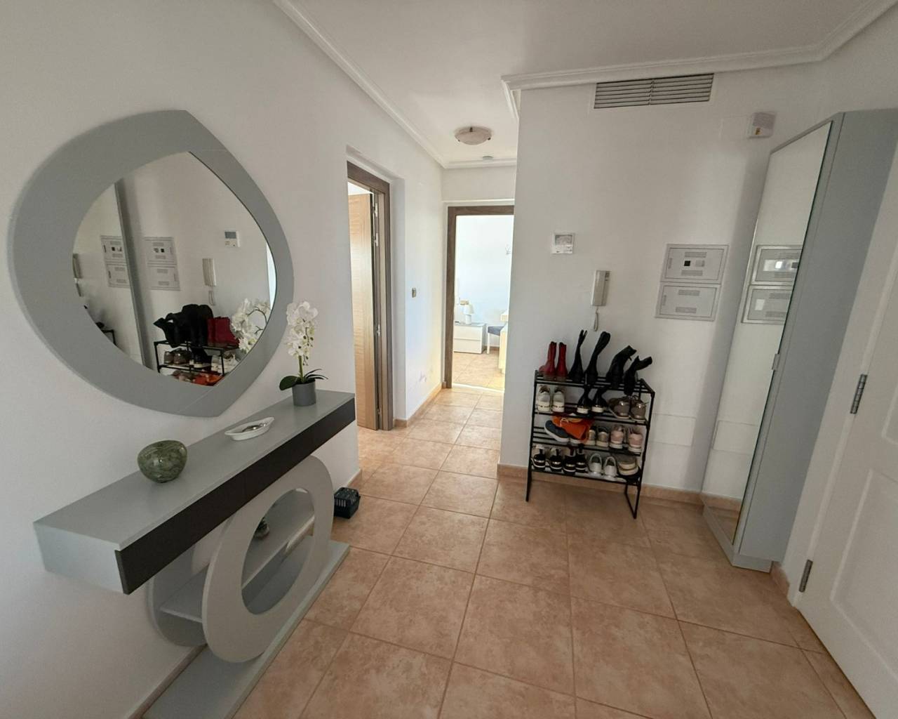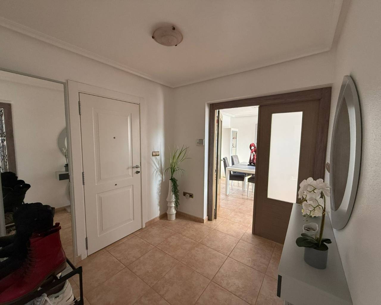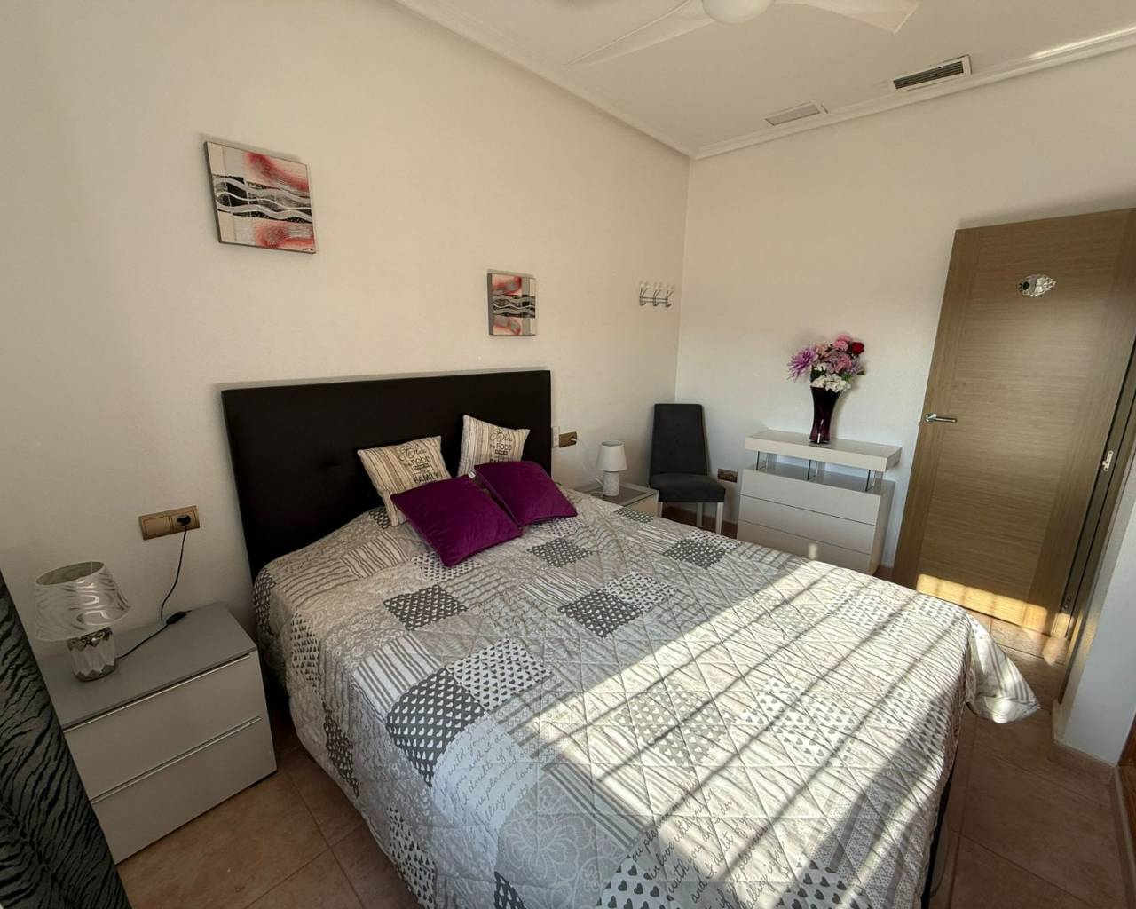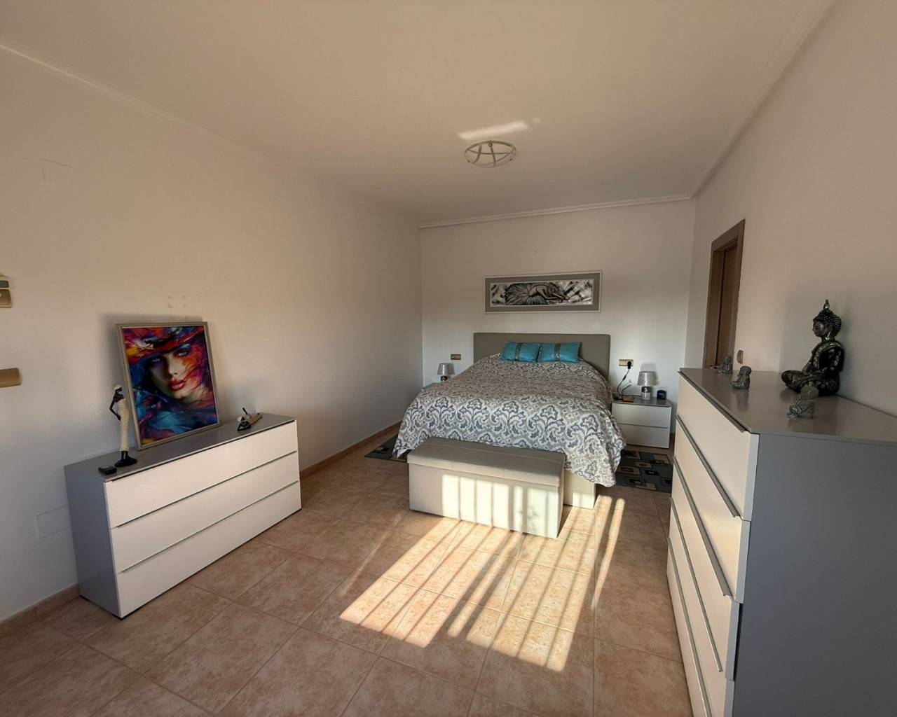 JL Morales Real Estate presents this charming countryside property, set in a peaceful location yet only five minutes from all amenities. It offers an ideal blend of tranquillity, space and comfort. The home is ideally situated just 20 minutes from the beautiful beaches of Guardamar and 30 minutes from Alicante International Airport, making it perfect for both holidays and full-time living.Upon entering, the hallway leads to the left into a spacious and bright living room featuring high ceilings, a pellet stove and a pleasant dining area. Adjacent to this space is the large separate kitchen. The master bedroom includes a dressing room and an ensuite bathroom with a modern walk-in shower. A separate guest toilet completes this side of the home.On the right side of the hallway, you will find two comfortable bedrooms with built-in wardrobes and a second bathroom with space for a washing machine and dryer. The home is sold furnished and comes equipped with mosquito screens and central air conditioning for year-round comfort.From the living room, you step out onto a covered terrace that flows into a sunny terrace with a swimming pool, offering beautiful open views over the surrounding countryside. The fully fenced plot of 1,734 m² is landscaped with various plants and trees and requires minimal maintenance. A double carport, wooden garden shed, pergola seating area and barbecue complete the outdoor amenities. A staircase on the side of the house leads to the rooftop terrace, where the panoramic views are even more striking.