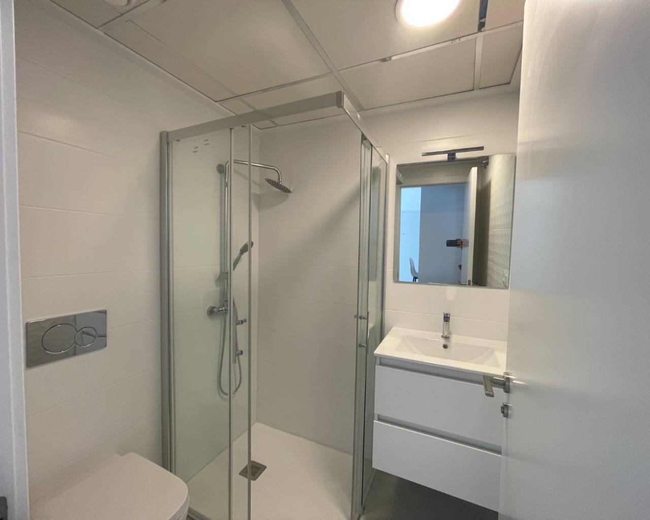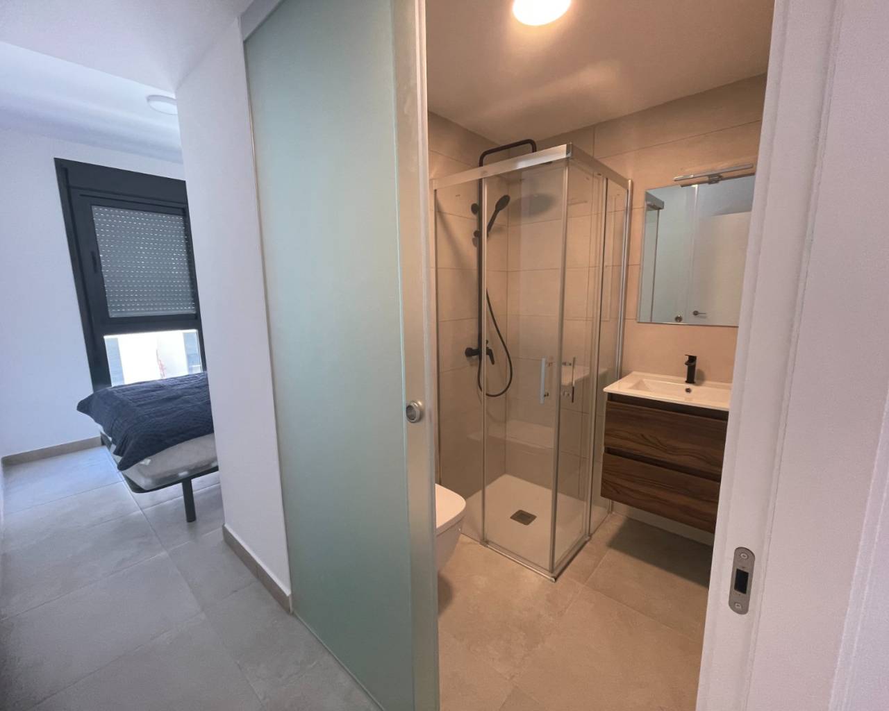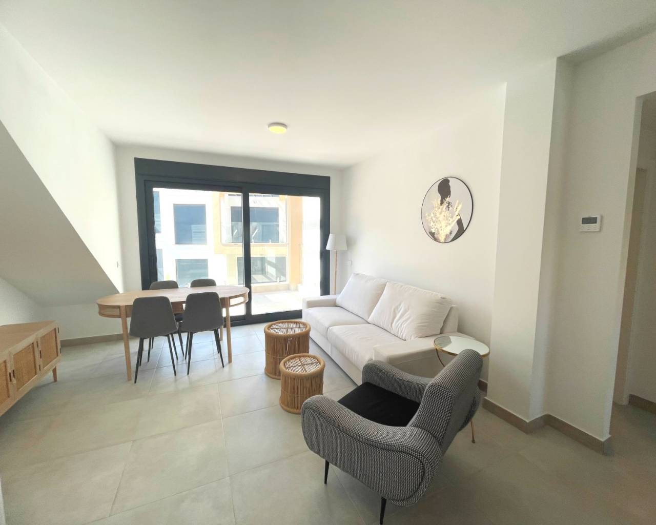 This South Facing, Two Bedroom, Top Floor Corner Apartment is located within a 10 minute walk of a main chain supermarket, JYSK furniture store, and a selection of café bars and restaurants. Villamartin Golf Course is just a 5 minute drive away, while the popular La Zenia Boulevard shopping centre and the beautiful beaches of the Orihuela Costa are only 10 minutes by car. Built in 2023, this stylish first-floor apartment boasts a modern design and bright interior. The open-plan living area features double sliding doors leading out to a partly covered terrace with views over the beautifully laid out communal pool area. The spacious fitted kitchen offers ample work and storage space along with a breakfast bar. There are two double bedrooms, both with built-in wardrobes, and two sleek shower rooms with under floor heating—one of which is en suite. A standout feature is the impressive 60m² private solarium, accessed via the terrace, offering ample space for sunbathing, entertaining, or enjoying the views. Additional benefits include air conditioning, off-road parking, and access to a stunning communal pool—all set in the heart of Costa Blanca South.