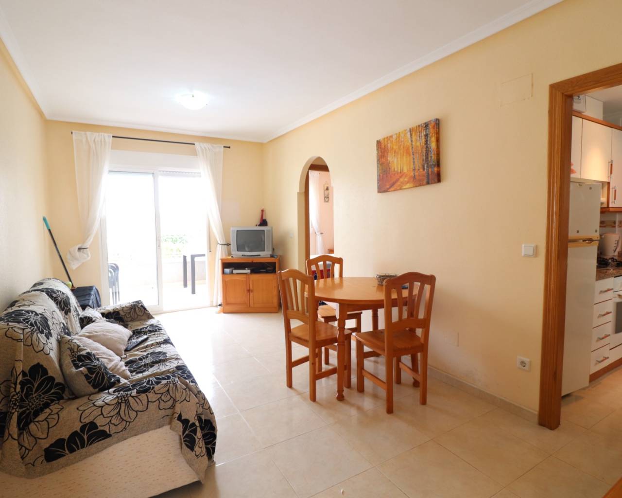 This East Facing, Two Bedroom, First Floor Apartment in Guardamar del Segura is located close to the heart of this popular coastal town. The stunning beach and promenade, lined with plenty of café bars and restaurants, are just a 5 minute drive away, with a supermarket only a 5 minute walk. La Marquesa golf course at Rojales, can be reached in around 10 minutes by car. The apartment offers a bright and comfortable living space, with an air conditioning unit and double sliding glazed doors that lead out to a private terrace overlooking the communal pool. There is a separate fitted kitchen, two double bedrooms – the master with built-in wardrobes and its own air conditioning unit – plus a family bathroom. Additional features include lift access within the block, a communal solarium, and an allocated parking space. An ideal opportunity as a holiday home, investment, or permanent residence in the sought-after area of Guardamar del Segura on the Costa Blanca South.