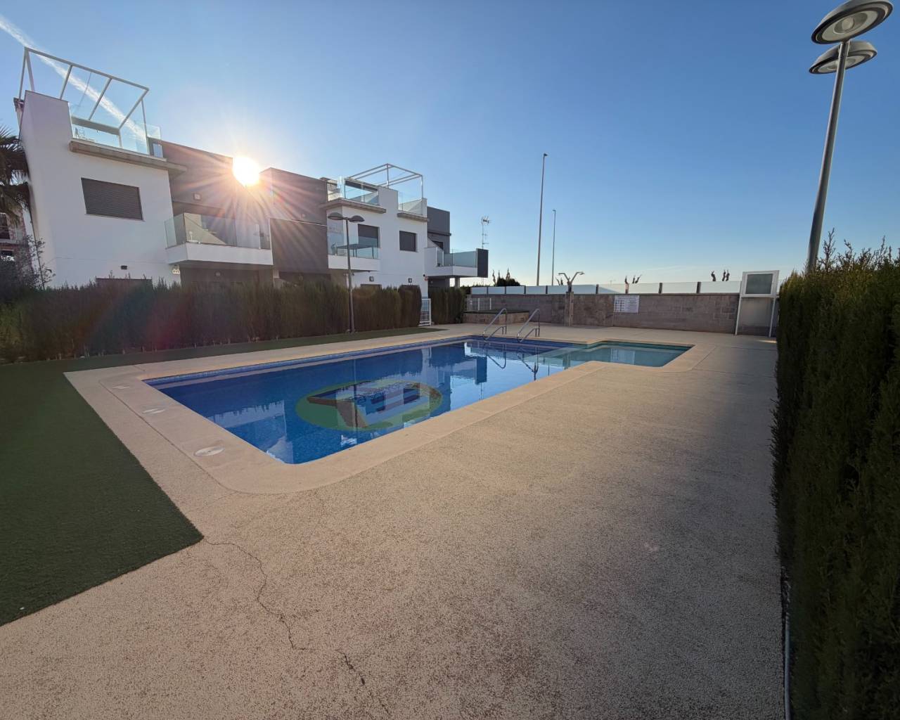 This Modern West Facing Ground Floor, Two Bedroom Apartment in Pilar de la Horadada is located in the beautiful Costa Blanca, offering a comfortable and stylish lifestyle just minutes from local amenities. Built in 2020, the property boasts a 70m² build on a 112m² plot, featuring two double bedrooms with air conditioning and free-standing wardrobes and a modern shower room. The open-plan kitchen flows seamlessly into the lounge, which is fitted with air conditioning and opens through double-glazed patio doors onto the private garden. The garden is partly tiled with artificial grass, providing a low-maintenance and relaxing outdoor space with peaceful countryside and private garden views. Residents can enjoy a communal pool, perfect for sunny days and the location is ideal—just a 10-minute walk to shops, bars and restaurants or only a 2-minute drive. The beach is also easily accessible, just a 3-minute drive (approximately 3km) combining convenience with the charm of coastal living in the Costa Blanca.
