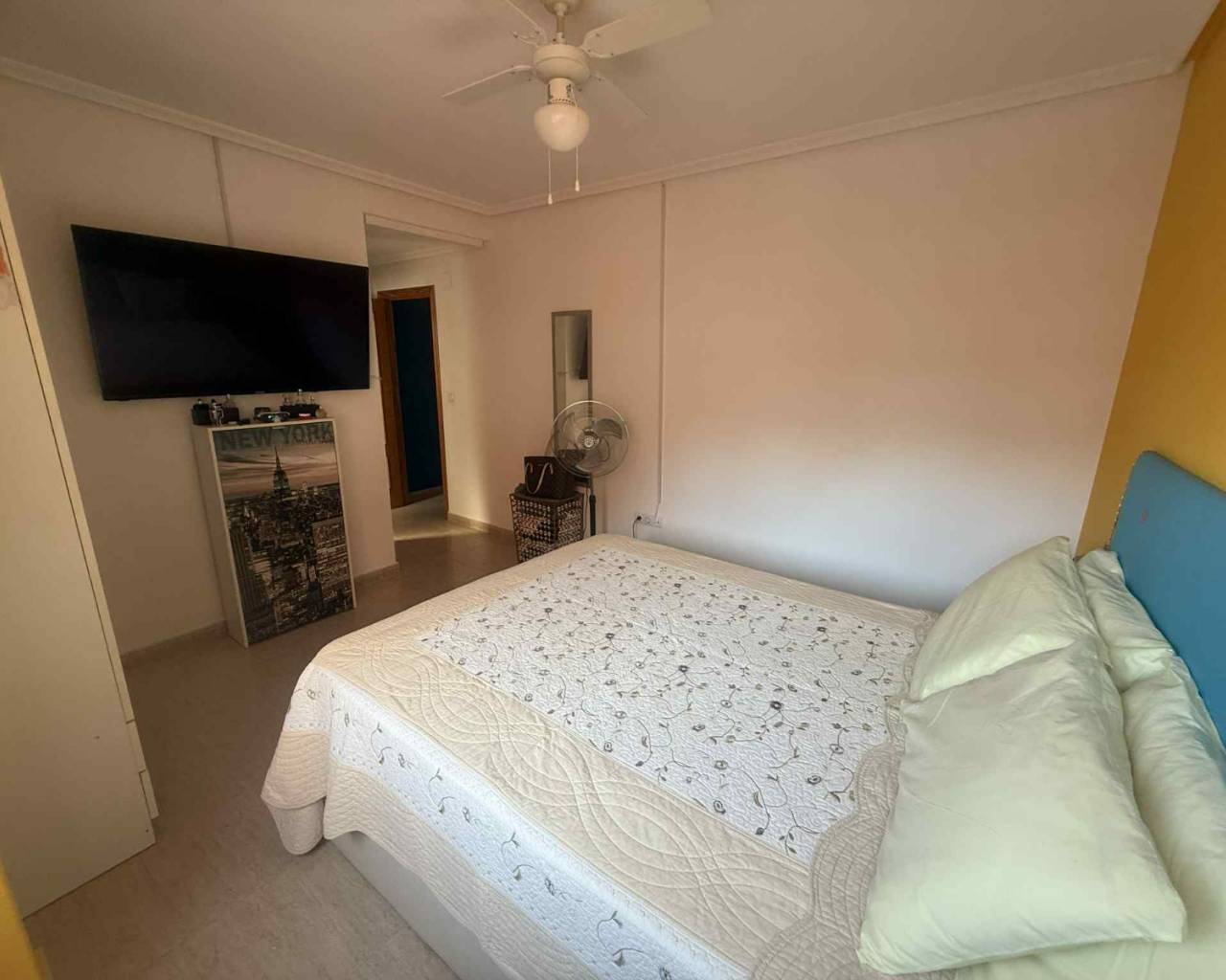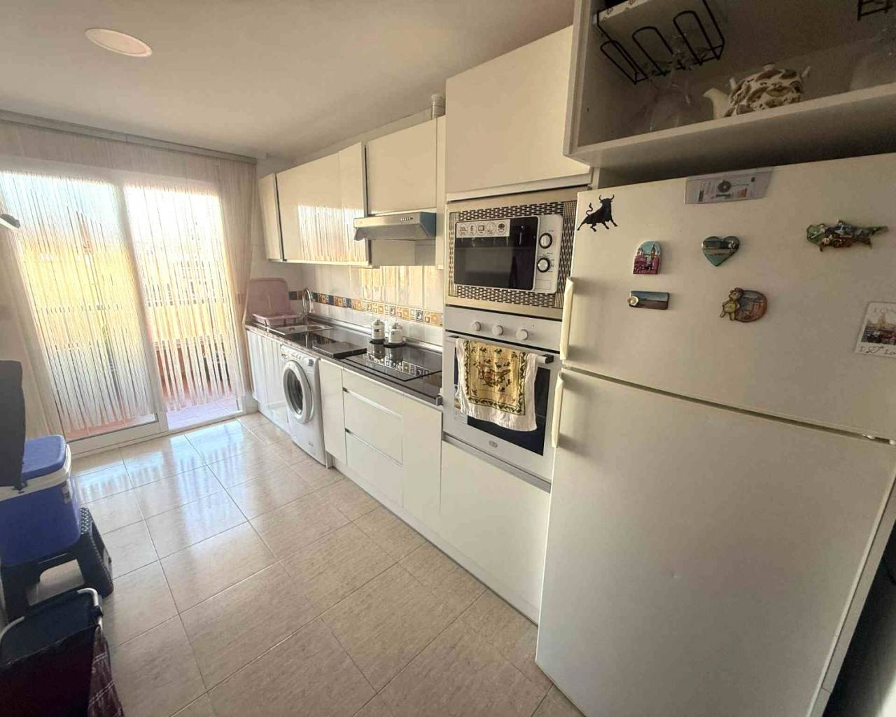 JL Morales Real Estate presents this spacious apartment located on the second floor with a communal swimming pool.It has a living area of approximately 100 m2. Upon entering the property, you will find a fully equipped kitchen and a separate spacious living room on your right. Both have access to the large terrace. Further down the hall, there are two bedrooms and a bathroom with a hydromassage. Then there is the master bedroom with an en-suite bathroom and a view of the communal swimming pool. All bedrooms have ceiling fans. The property is sold furnished and also has an underground parking space. There is a lift to all floors. You can enjoy the sun by the communal swimming pool. Within walking distance of all amenities, only a 15-minute drive to the beautiful sandy beaches of Guardamar and 30 minutes to Alicante airport.
