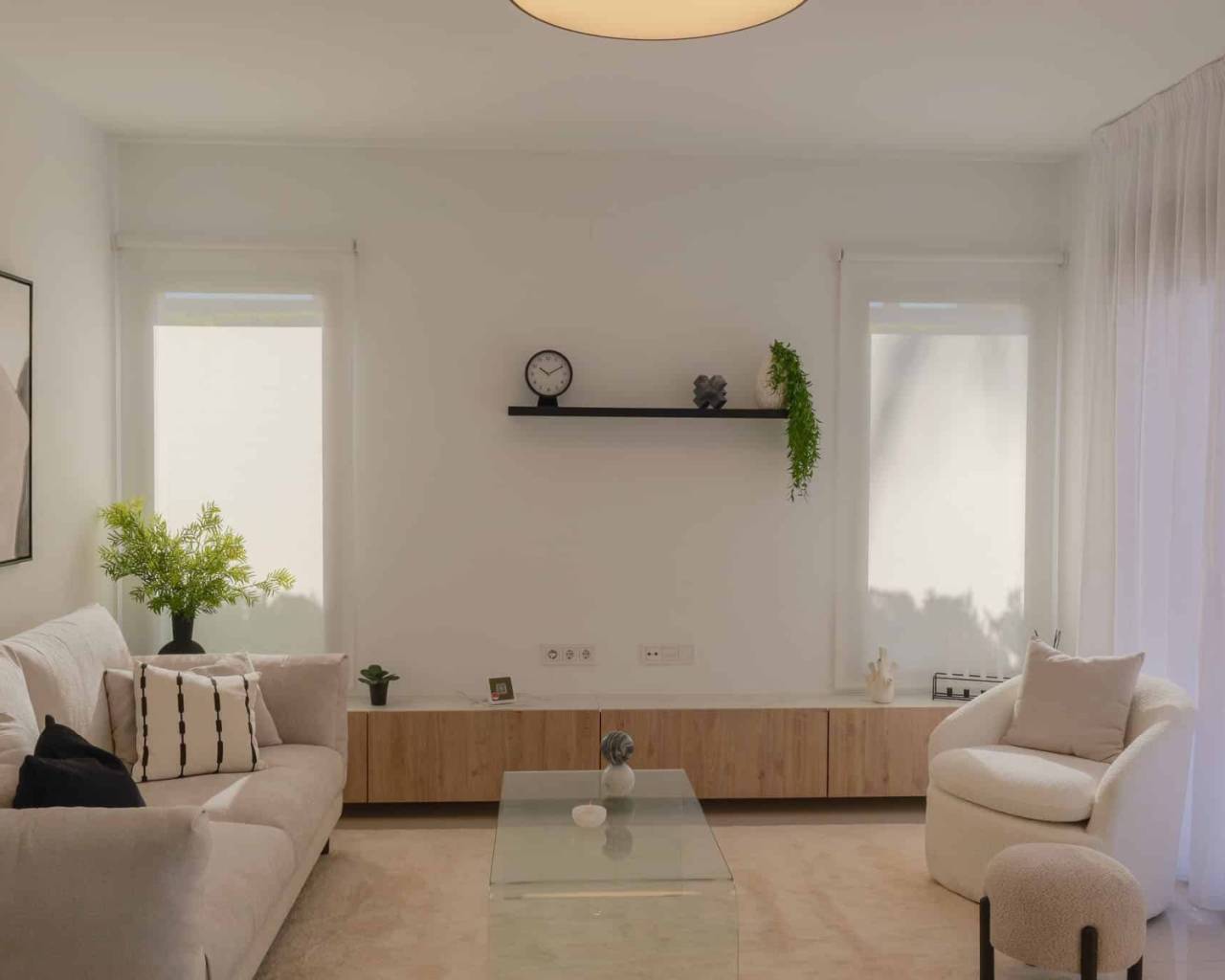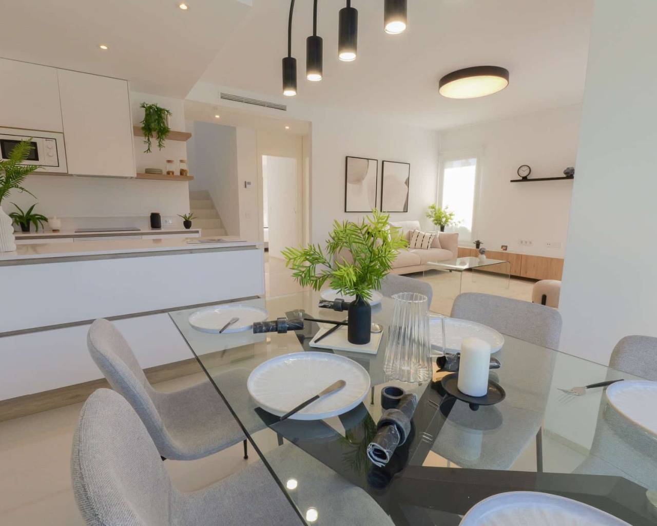 Villa Jade is located in Los Alcázares. This wonderful villa is built according to the quality standards and luxury finishes of the Euromarina buildings. It has 3 bedrooms, 3 bathrooms, open kitchen, living room, 3 terraces, solarium, garden, pool and private parking. Air conditioning installation included and underfloor heating in bathrooms.